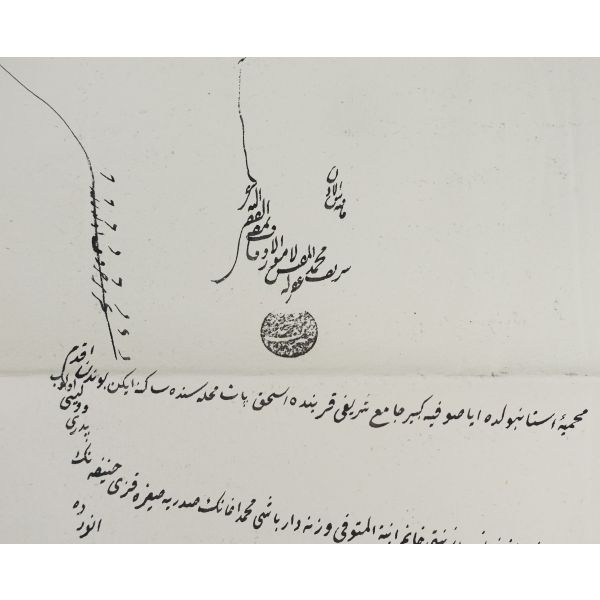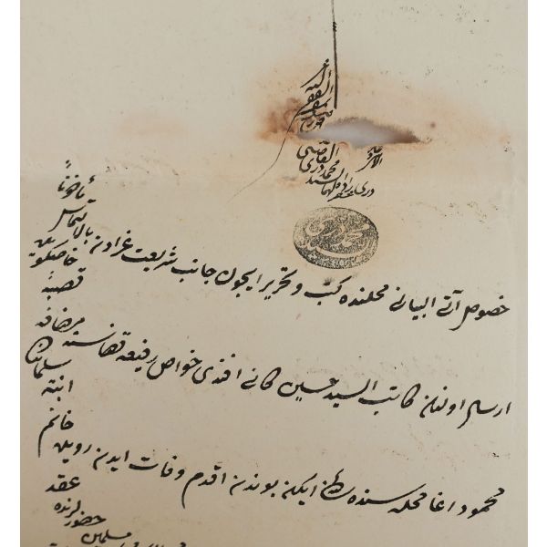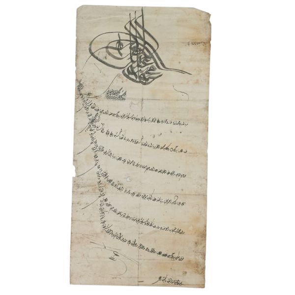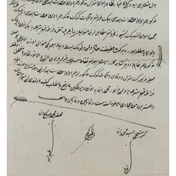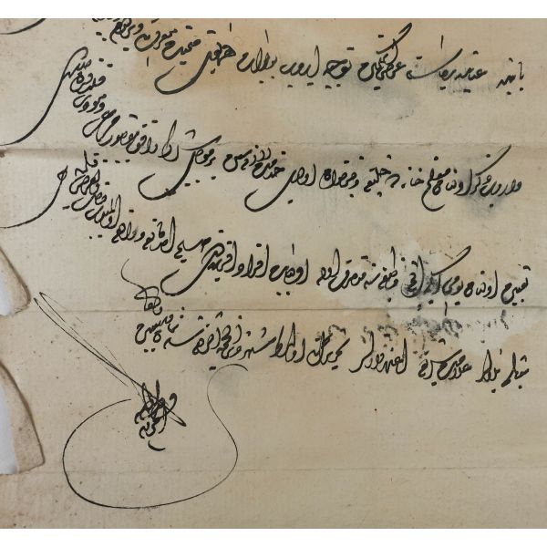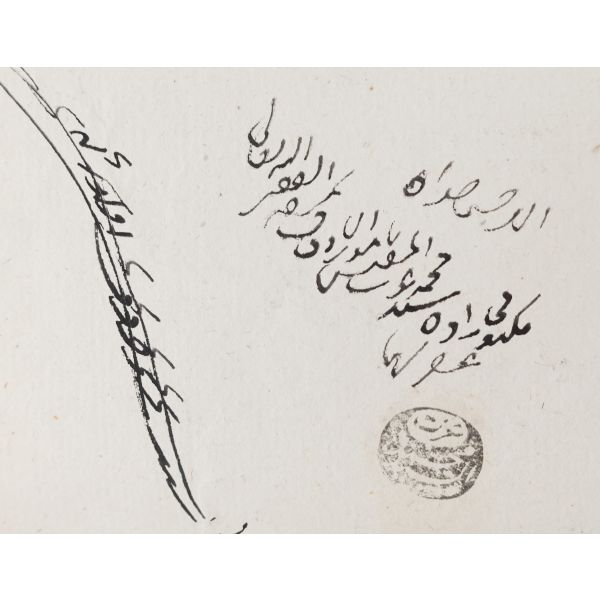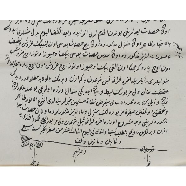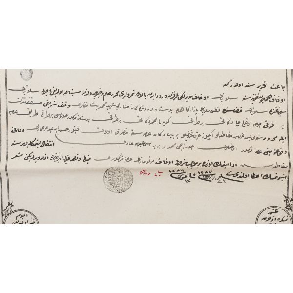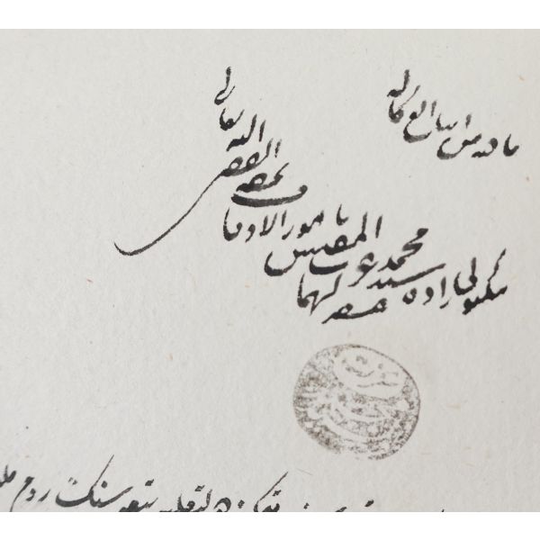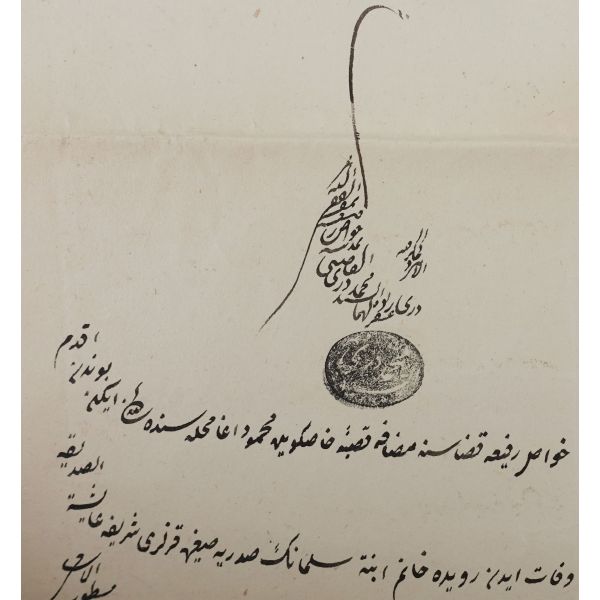 Sultan 2. Mahmud´un genç yaşta vefat eden kızı Saliha Sultan´dan dadısı Fatma Kalfa ve hizmetlilerinden Dürrüyâr Kalfa´ya verilen hisselere dair berat ve hüccetler.