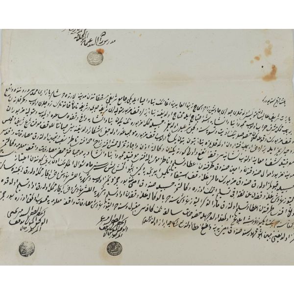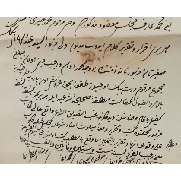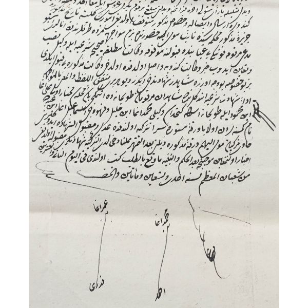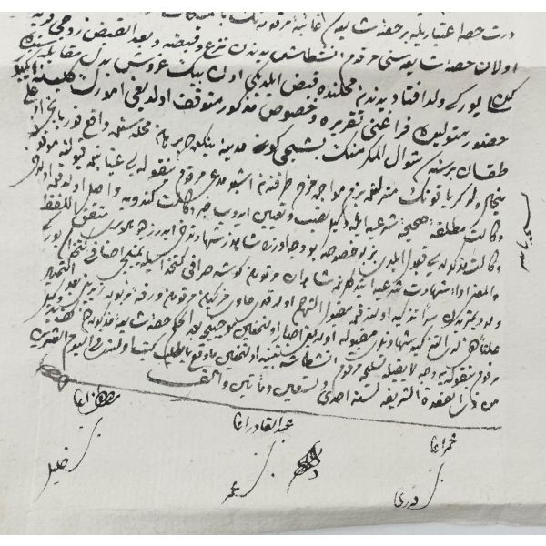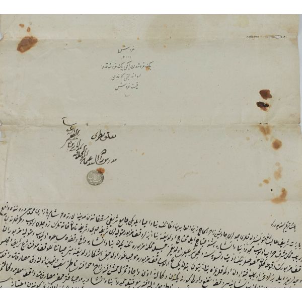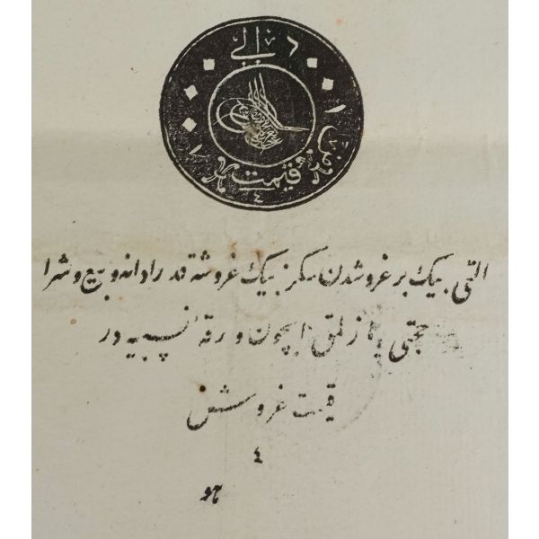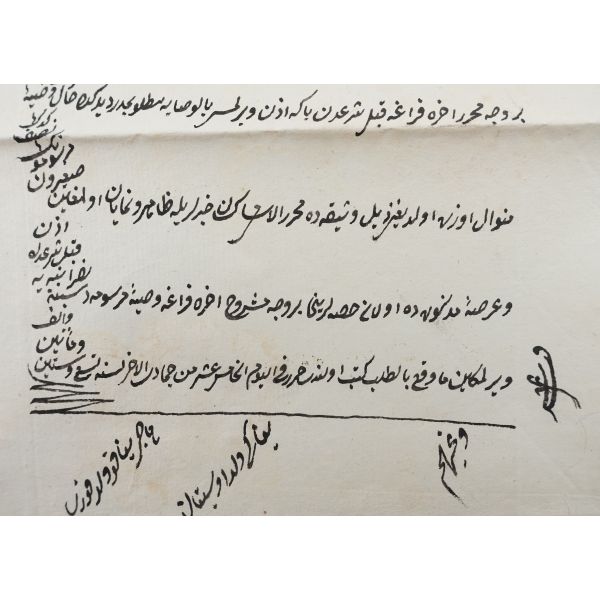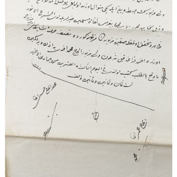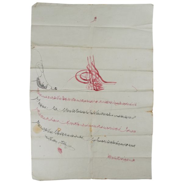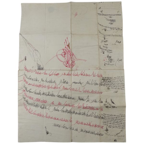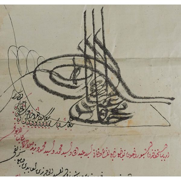 Sultan 2. Mahmud´un genç yaşta vefat eden kızı Saliha Sultan´dan dadısı Fatma Kalfa ve hizmetlilerinden Dürrüyâr Kalfa´ya verilen hisselere dair berat ve hüccetler.