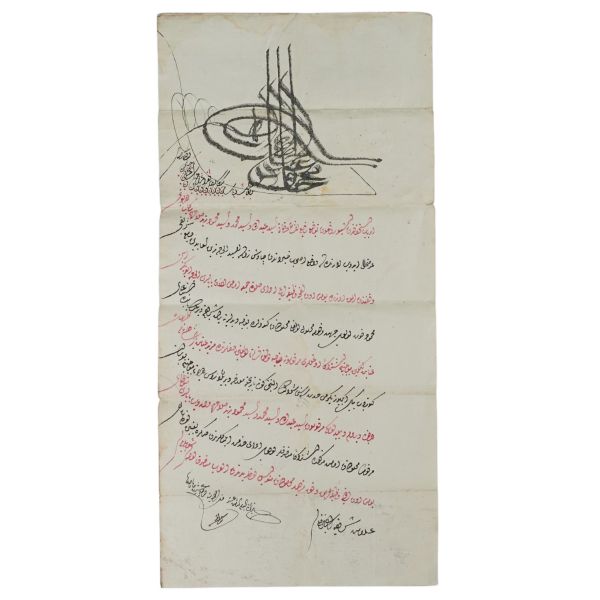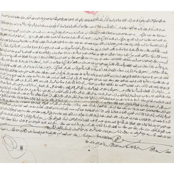 Lârende´de (Karaman) Fenârî Mahallesindeki Koyuncu Baba Mescidi´ne imtihan sonrasında Hacı Recebzade Ahmed Necib´in atanmasına dair Sultan 2. Mahmud el çekme tuğralı berat.