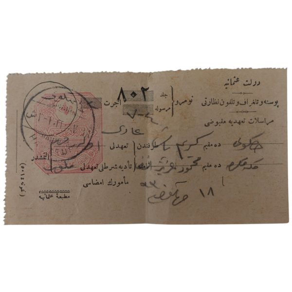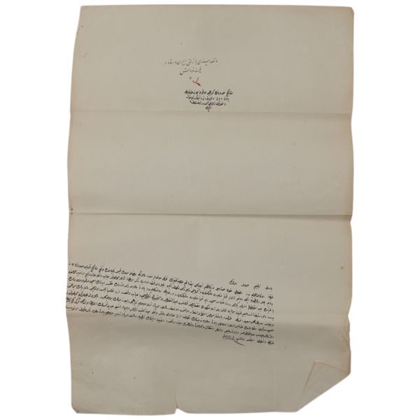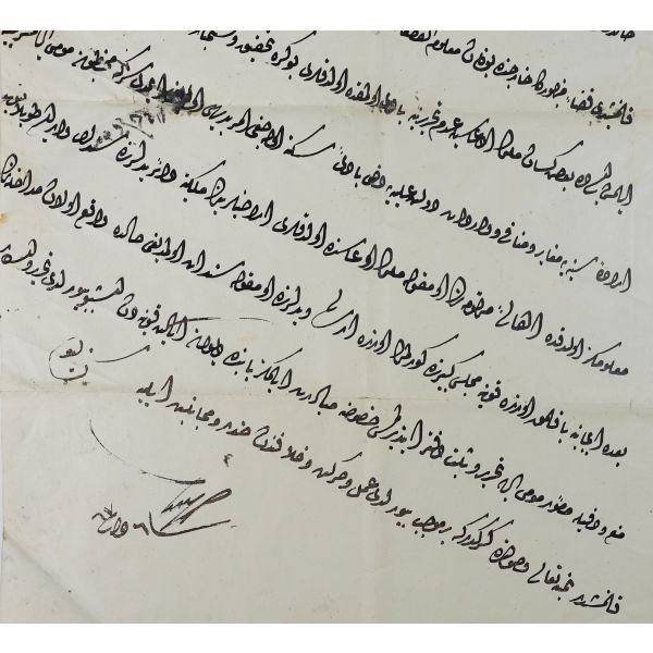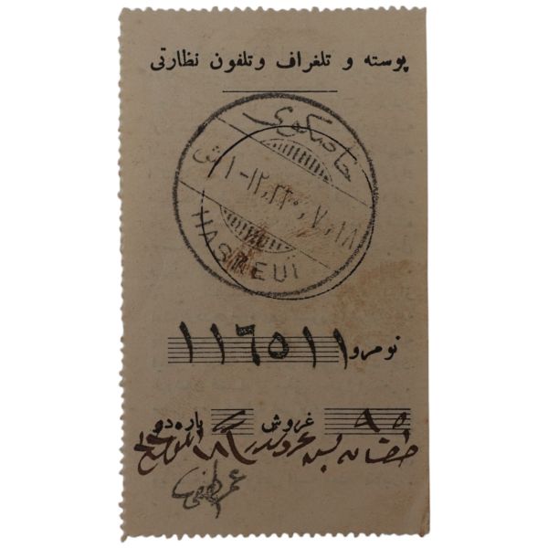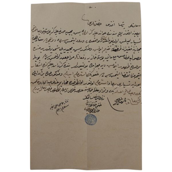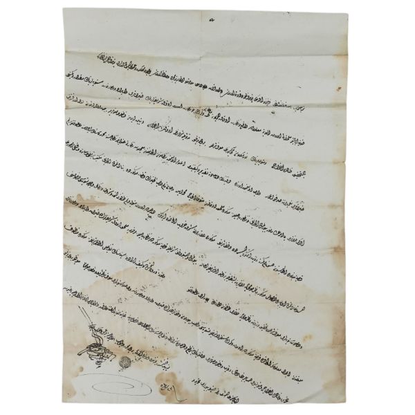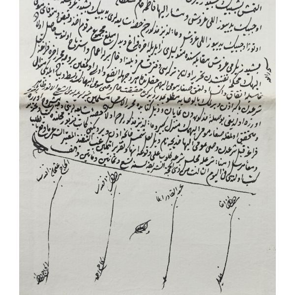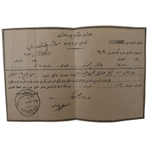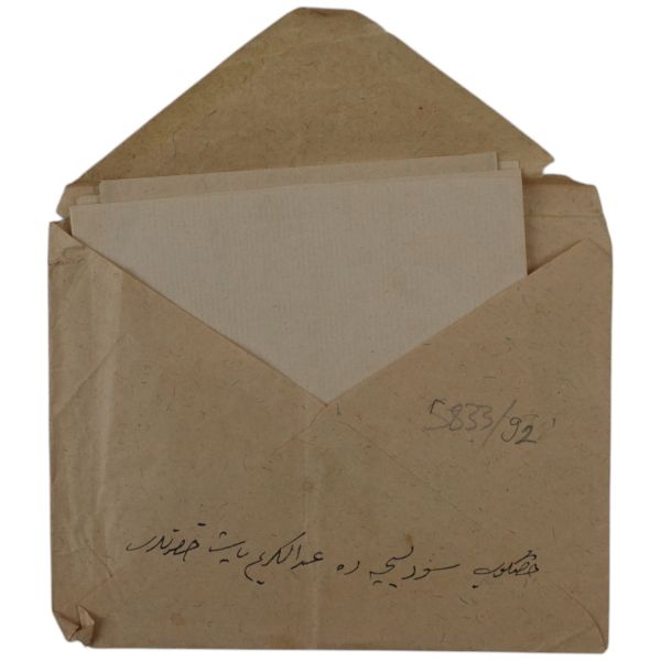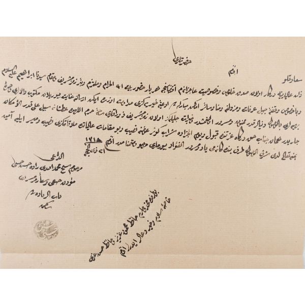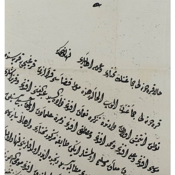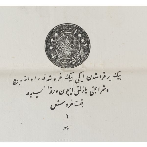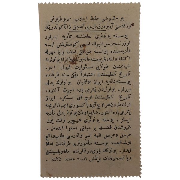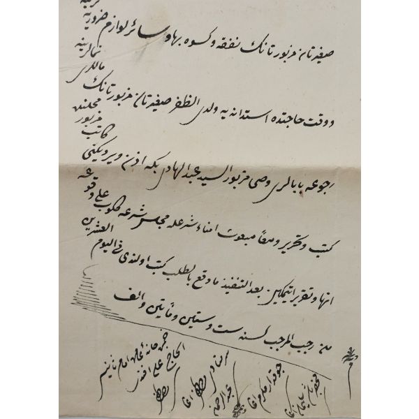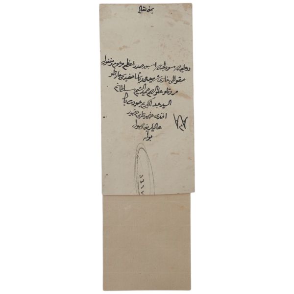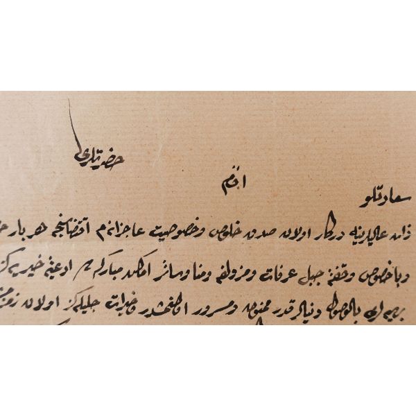 Sokollu Mehmed Paşa´nın torunlarından Abdülkerim Paşa tarafından Hafız Mahmud Efendi´ye Gönderilen beş mecidiyenin ulaşmaması üzerine gönderilen, "Selâm-ı Mahsus ve dualar ederim" cümlesiyle biten mektup.