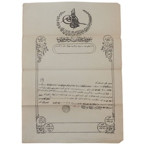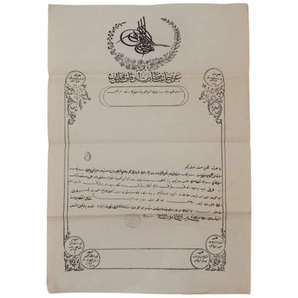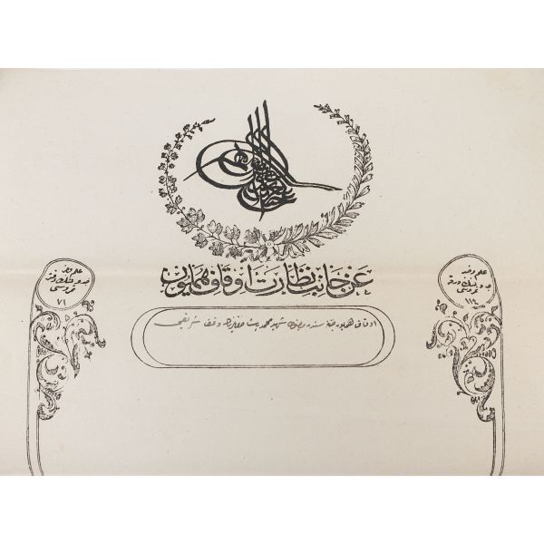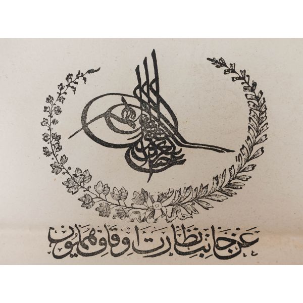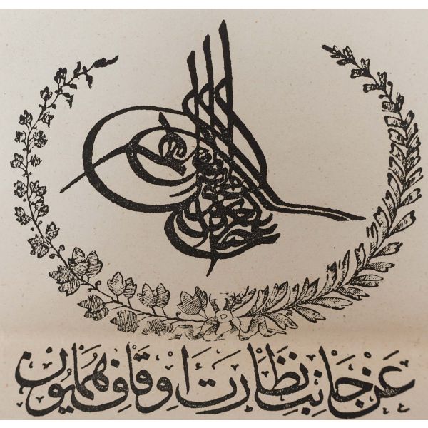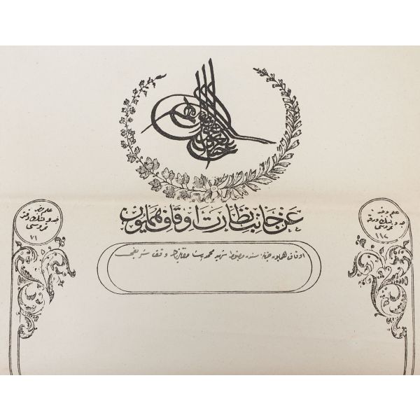 Sabık reisülküttab müteveffa Hacı Mustafa Efendi´nin İstanbul, Kastamonu ve Belgrad´da ihya ettiği vakıflara dair çıkan problemlerin çözülmesine dair el çekme Sultan 1. Abdülhamid tuğralı ferman.