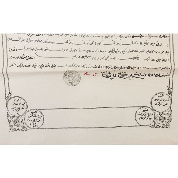 Evkâf-ı Hümâyûn Hazinesine kayıtlı Şehid Mehmed Paşa Vakfı´nın Selanik´teki dükkanının Tekfurdağlı Ahmed Ağa´nın vefatı üzerine Cevahir Ahmed Ağa´ya devrine ilişkin temessük.