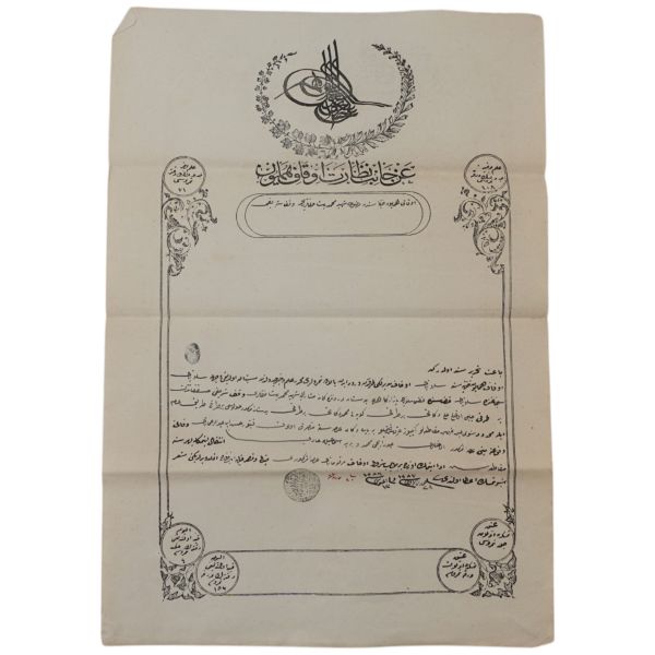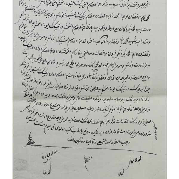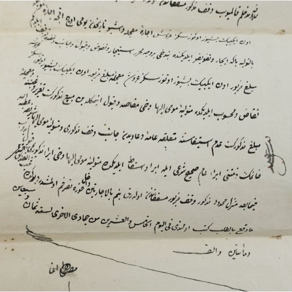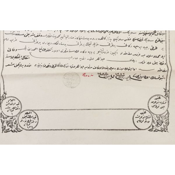 "Eski Sadrazam Şehid Mehmed Paşa´nın vakfının mülklerinden bir temessükün ehl-i vakfı vefat ettiği için yerine büyük oğlunun geçmesine" dair talep ve temessük.