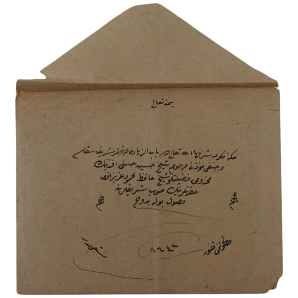 Mekke´deki Hüseyin Hüsnî Efendi´den Sokollu Mehmed Paşa´nın torunlarından Der-Aliyye´deki (İstanbul) Abdülkerim Cevdet Bey Efendi Hazretlerine gönderilen mektup.