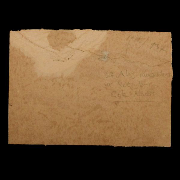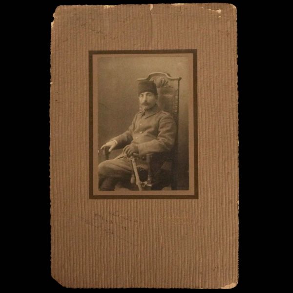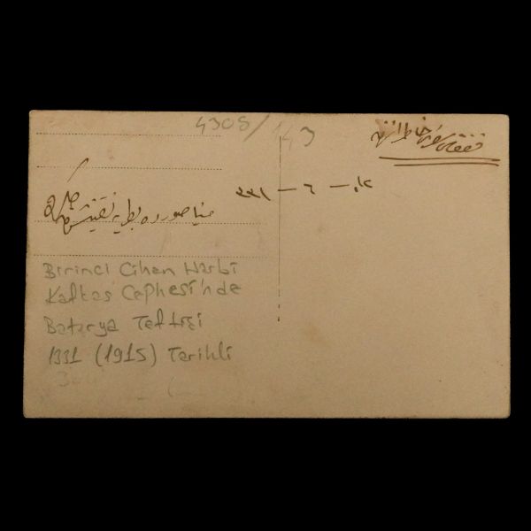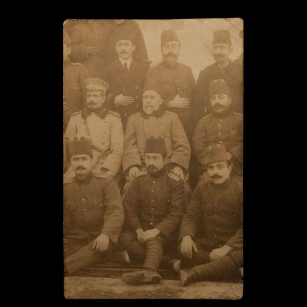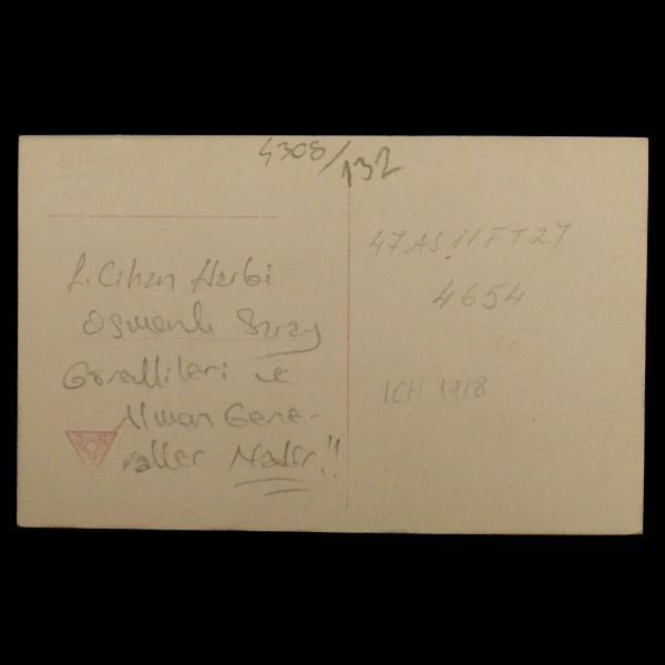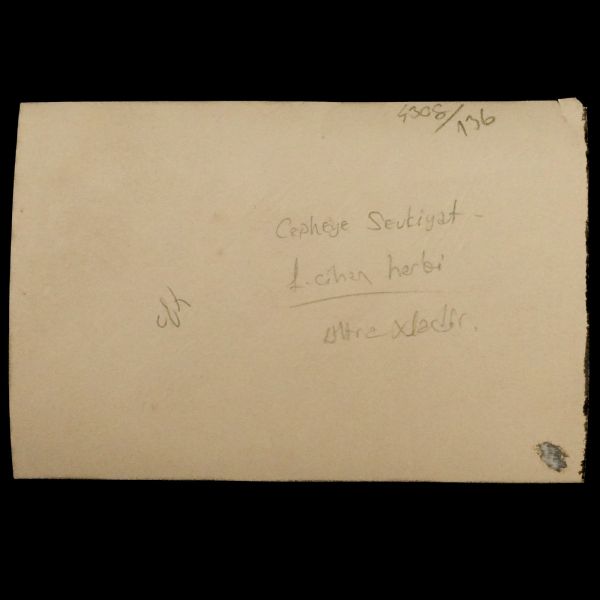 Fotoğrafın ön yüzünde, Osmanlıca "Süvari Zabıtanı" ; arka yüzünde ise Süvari Albay Ş.İzmirli´nin imzası ve "Bayramınızı kutlular, saygıle ellerinizden öperiz." notu yer almaktadır.