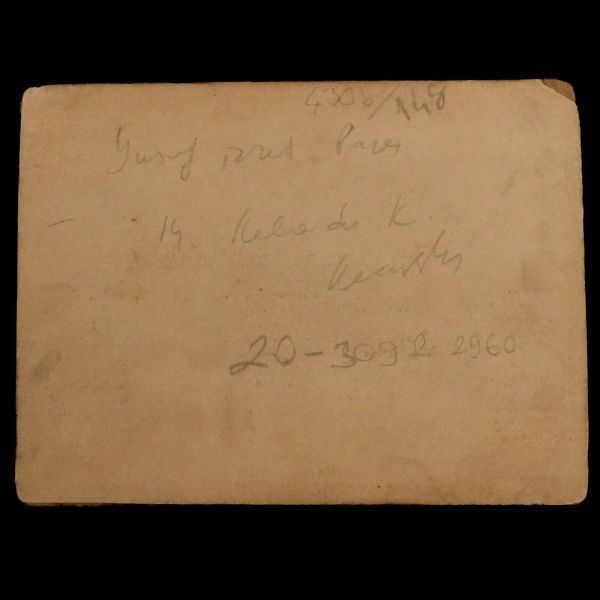 Fotoğrafın arka yüzünde "Intel Press Exchg" (New York) kaşesi mevcuttur. *Orta alt bölümünden ve köşelerinden kırılan fotoğraf, bantla tamir edilmiştir. Haliyle.