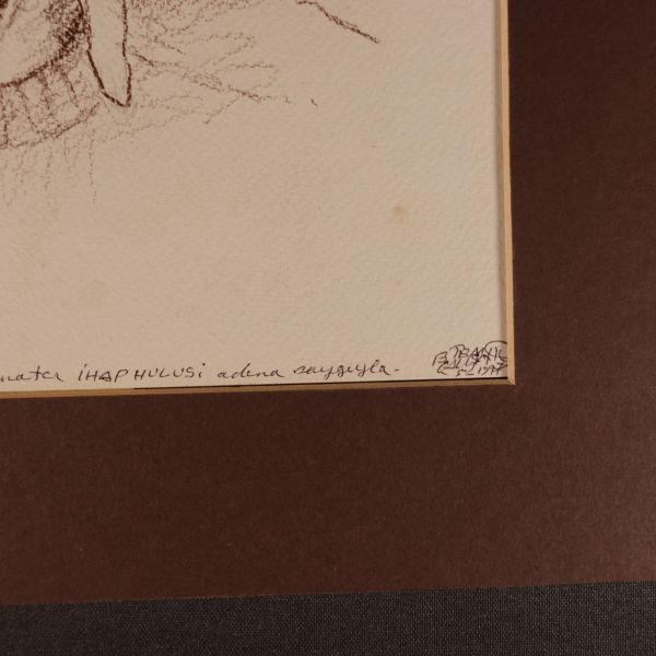 Kâğıdın sağ ve sol alt köşelerine el yazısıyla yazılan "1967" tarihi bizzat İhap Hulusi tarafından atılmış olup çizimin yapılış tarihini ortaya koymaktadır.