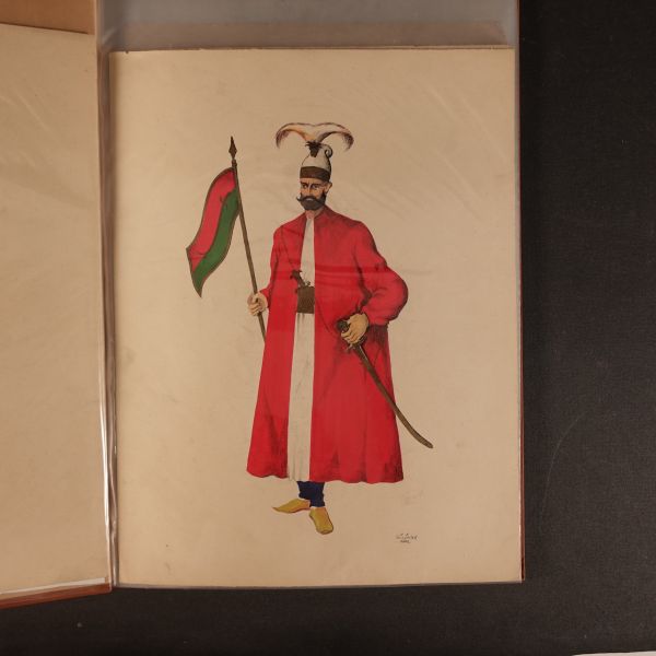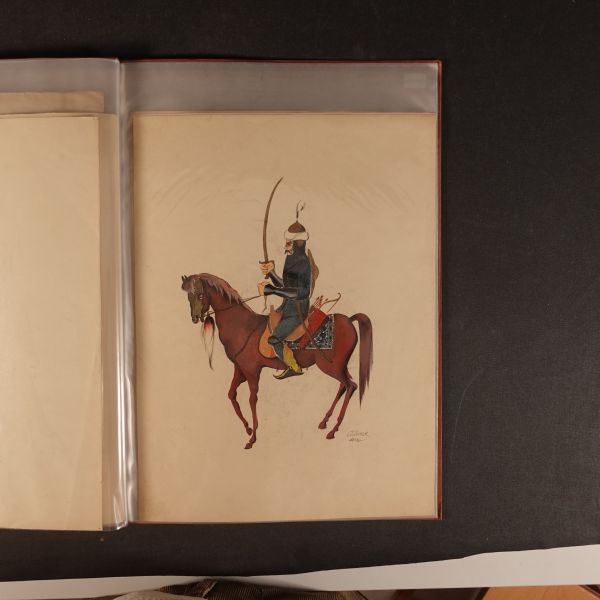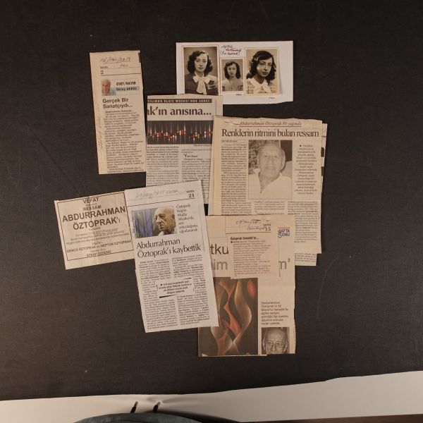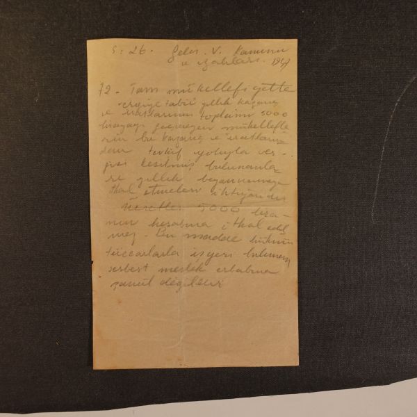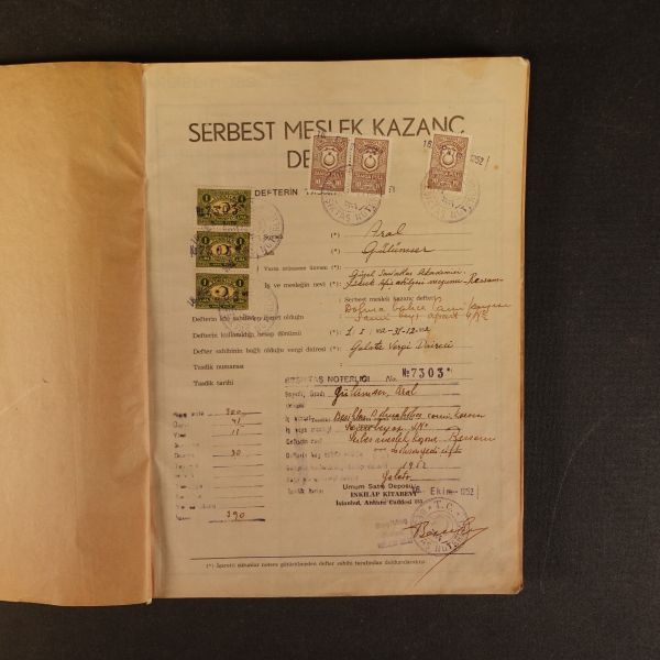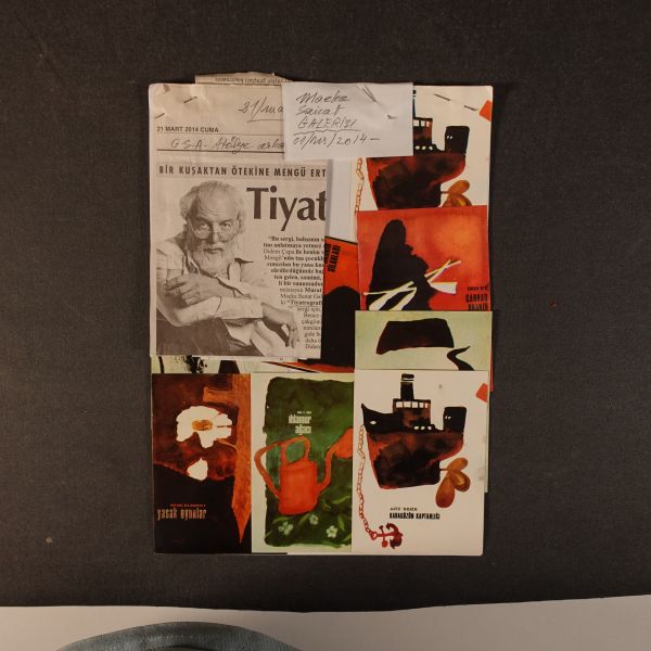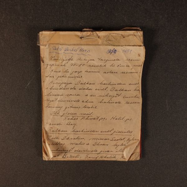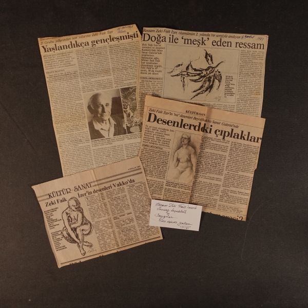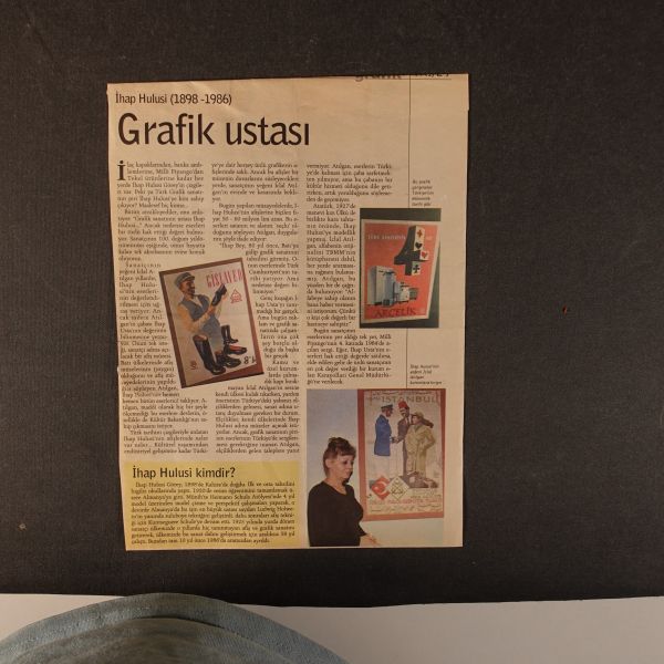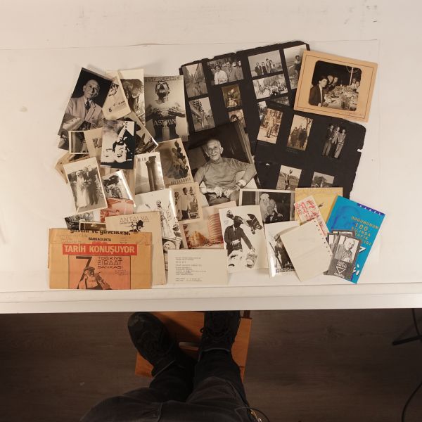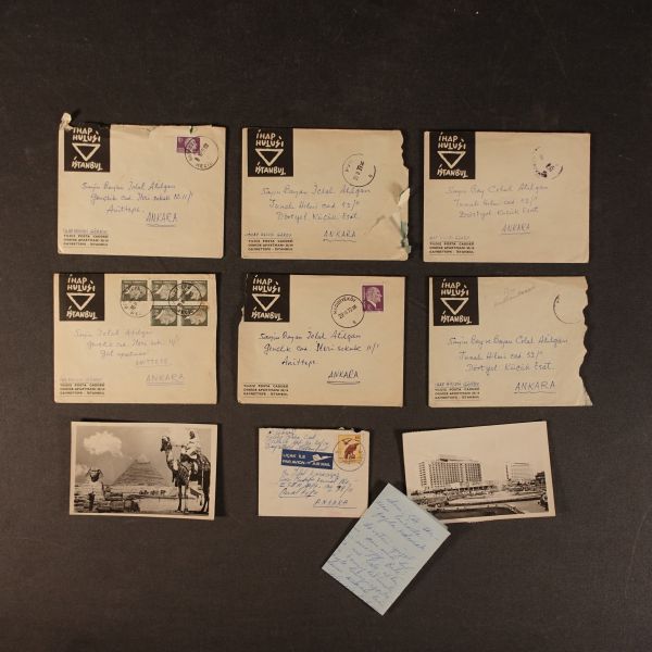 Lot içeriği: İhap Hulusi´nin özel fotoğraf albümünden, dördü ikinci baskı olmak üzere 48 adet fotoğraf (albüm sayfalarına yapışık bulunan 30 fotoğraftan birinde İhap Hulusi, şair İlhan Şevket Aykut ile birlikte görülmektedir), farklı yıllarda tasarlamış olduğu kurum, marka ve ürün afişlerinin fotoğrafları (16 adet), Ziraat Bankası´nın 120. Yılı vesilesiyle 1929 tarihli bir çizimi gazeteye çıkan İhap Hulusi´nin, el yazısıyla "Bu resmin yapılış tarihi 1929´dur" notunu düştükten sonra "Kuzum kızım sevgili İclale yeni yılda mutluluklar ve muvaffakiyetler dilerim" ithafıyla imzaladığı kupür, bir dergiden keserek kartona yapıştırdığı "Antalya Umumî Nakliyat T.A.Ş." reklamı (kendi tasarımı), 27 Mart 1985 tarihinde aldırdığı beyin sintigrafisinin makbuzu, kendisinin tasarladığı 19 Mayıs 1966 tarihli Millî Piyango biletinin, arka yüzüne "İşbu bilet Kadir Özalp, Nida Şensel ve İclâl Karaoğuza (İclal Atılgan) ait olmak üzere ortaklıdır." yazılmış ve ortaklar tarafından imzalanmış nüshası, 11-24 Mayıs 1977 tarihleri arasından Devlet Tatbiki Güzel Sanatlar Yüksekokulu´nda düzenlenen kişisel sergisinin davetiyesi, cenazesinde takılan yaka kartı (4 adet) ve Hacettepe Üniversitesi Güzel Sanatlar Fakültesi Grafik Bölümü´nün 28 Kasım 1998 tarihinde düzenlediği "Doğumunun 100. Yılında İhap Hulusi" panelinin davetiyesi...