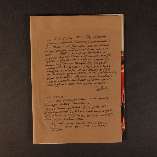 Gülümser Aral tarafından kaleme alınan not: "...G.S.A.den 1952 Has(?) dönemi mezun olunca hocam (G.S.A müdürü) Sn. Zeki Faik İzer´den; ilerde Akademiye (Kostüm tariki) asistan olmam için ...(Bale) her salı hocalarla yapılan toplantılara katılmam teklifi geldi. Akademik kariyer yapabilmem için; ´Topkapı Sarayında´ değerli minyatür kitaplarını Sn. İsmail Hakkı Uzunşarlılı + Sn. Rıfkı Melûl Meriç eşliğinde; öncelikle (askeri) kostümleri detaylarla çizip arşivledim - Ayrıca depolardan tarihi kostümleri (sarık, işleme + ...zeme) görme şansına sahip oldum. *Gülümser* / 16 Mayıs 1952 ...Bu çalışmalarım sonucunda ´Harbiye Askeri Müzeden´ İstanbulun fethinin 500. yılı için hazırlanacak ´Mehter Takımı´ giysi çizimleri ile ´Yeniçeri´ askeri kıyafetlerini çizip teslim ettim. - 22 adet çizim tanesi > 15TL = 350TL -- 4 adet grup çizim > 37,5TL = 150TL" *Makalenin yayımlandığı dergi, 2009 tarihli Sky Life - THY dergisidir.