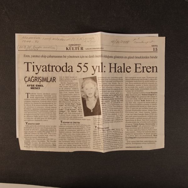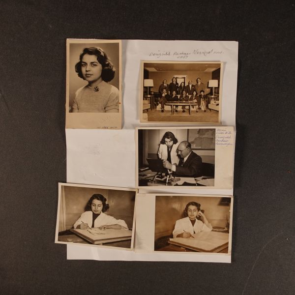 Lot içeriği: 1) Güzel Sanatlar Akademisi´nde öğrenciyken, 1951´de katıldığı Türkiye Güzellik Yarışması´nda birinci olan Günseli Başar´ın, "Sevgili Gülümsere En İyi Temennilerimle" ithafıyla imzaladığı, 8 Mart 1952 tarihli portre fotoğrafı (Foto Venüs, Kadıköy - 17x23 cm) 2) İkilinin Ocak 1952 tarihinde seyirci olarak katıldıkları ´Olgunlaşma Defilesi´nde çekilmiş iki adet enstantane fotoğrafı (9x14 cm) 3) İkilinin yaşlılık yıllarında Bodrum´da çekilmiş, "Günseli ile 57 yıl sonra.." ve "İki dünya güzeli! 26 Mayıs 2009" notlarıyla kâğıda yapıştırılmış fotoğrafı (fotoğraf da kâğıt baskıdır) 4) Günseli Başar´ın sağlığında ve vefatı sonrasında çıkan haber kupürleri (6 adet)