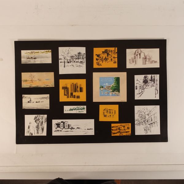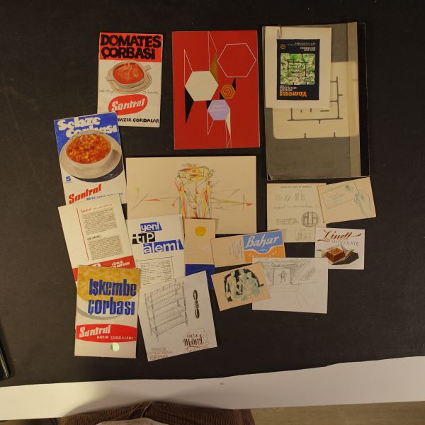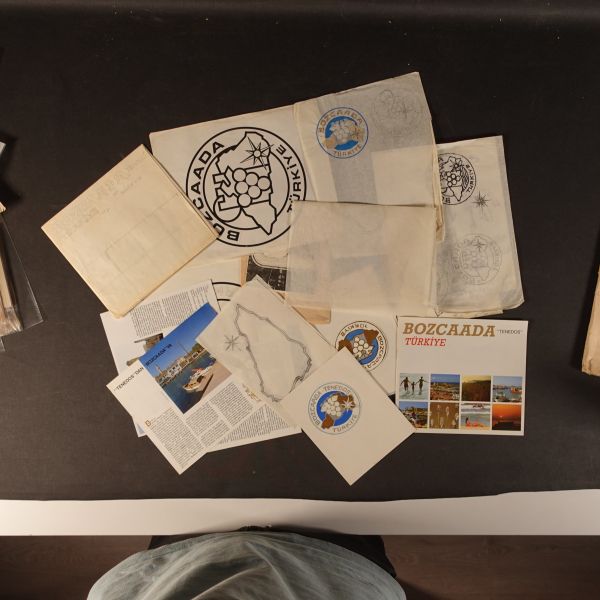 Lot içeriği: Mesut Manioğlu´na ait Mimar Sinan Üniversitesi Kimlik Kartı´nın fotokopisi, Mesut Manioğlu´na ait kartvizit, "Mes´ut Mânioğlu (Dekoratör)" antetli zarf içinde saklanmış yerli pullar, "Eserlerini Yıllardır Tanıdığımız... Mesut Mânioğlu" başlıklı dergi makalesinin fotokopisi, bir arkadaşının 3 Ekim 1953 tarihinde kendisine ithaflayıp imzaladığı fotoğrafı, Mesut Manioğlu´nun DIA fotoğrafı, işlerinin ve işlerinin sergilendiği sergilerin fotoğrafları (12 DIA, 6 pozitif baskı)...