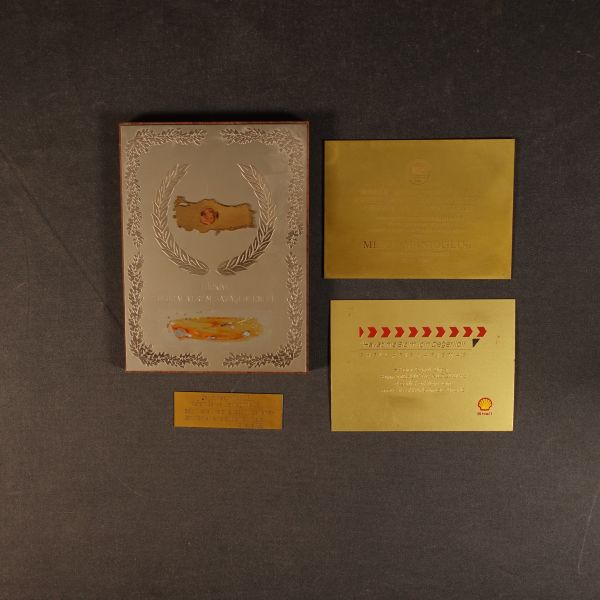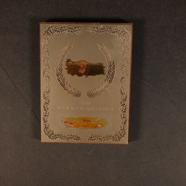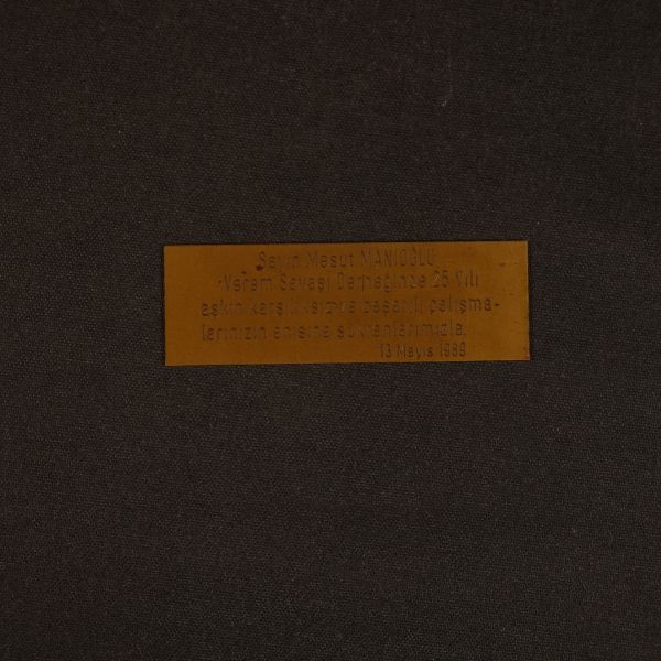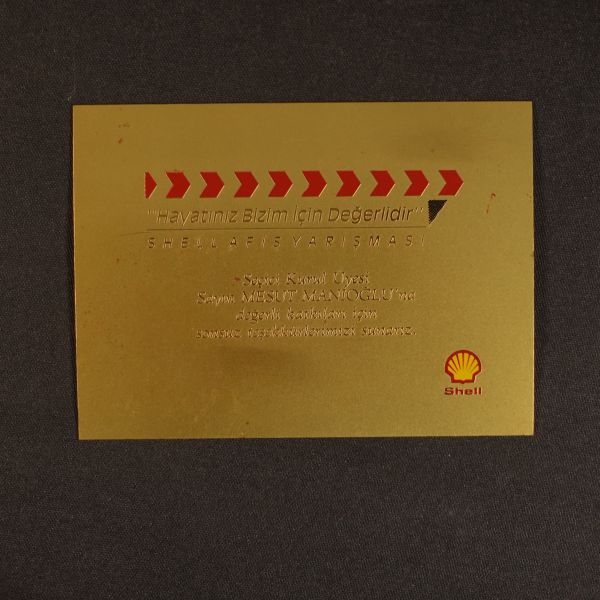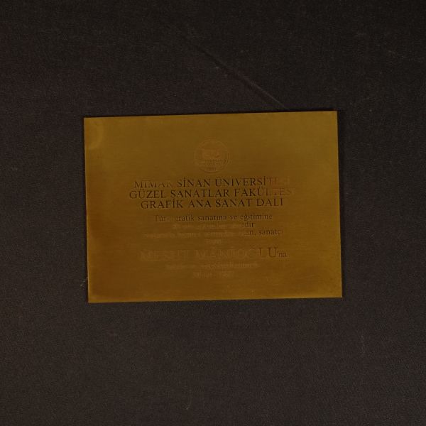 1) Mimar Sinan Üniversitesi Güzel Sanatlar Fakültesi Grafik Ana Sanat Dalı (yalnızca plaka), 2) Türkiye Ulusal Verem Savaşı Derneği (şilt, plakası yapıştırıldığı yerden ayrılmış; logosu eksik haliyle), 3) Shell Afiş Yarışması (yalnızca plaka)...
