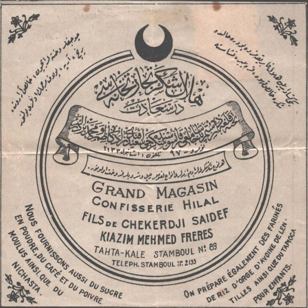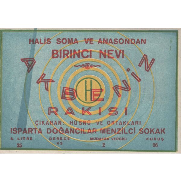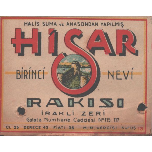 Etiketinde "Halis üzümden hasıl olmadığını emsali edenlere 25.000 Frank mükafat verileceği ilan olunur." ibaresi yer almaktadır. Etiket üzerinde bölgesel lekelenmeler ve yırtılmalar mevcuttur.