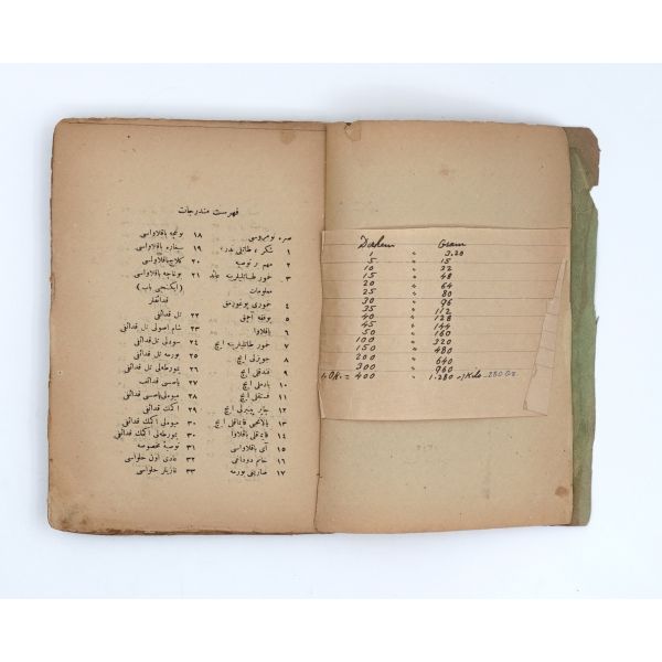 Ön ve arka kapağı ayrık halde... Her devrin “yeni”si zamanının muktediridir. 19. yüzyıl İstanbul mutfağında kebapların, dolmaların, helvaların ve pilavların yanında turta, rozbif, puding gibi “alafranga” yemeklerin yer aldığı Yeni Yemek Kitabı, adından da anlaşılacağı gibi gününün mutfak akımını yansıtan “yeni” kitaplardan biri. İlk kez 1880 yılında yayımlanan eserin yazarının kim olduğu bilinmiyor. Geleneksel yemek çeşitleriyle alafranga mutfağın bir araya geldiği kitabın önsözünde, tariflerin dönemin meşhur aşçılarının İstanbul konaklarında yaptığı yemek tarifleri olduğu belirtilir. Osmanlı mutfağının özelliklerini yansıtan pişirme teknikleri ve malzemelerin yer aldığı Yeni Yemek Kitabı, yüzyıllar öncesinden günümüze uzanan önemli bir kaynaktır.