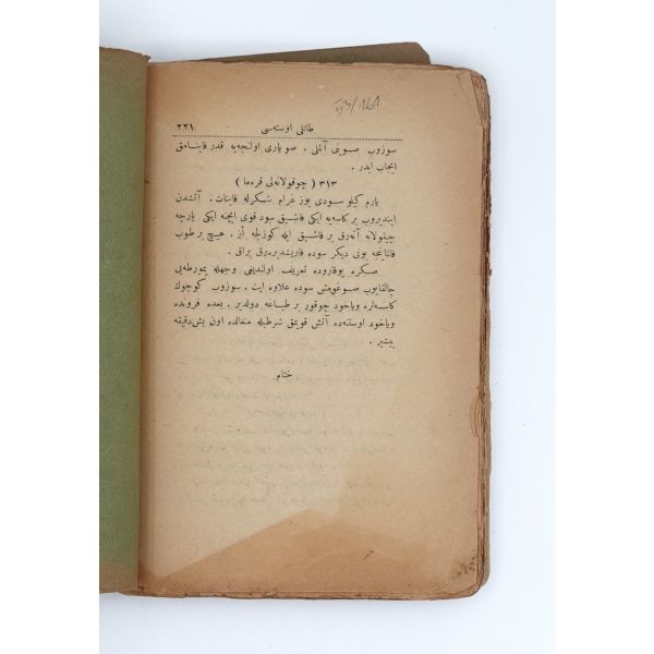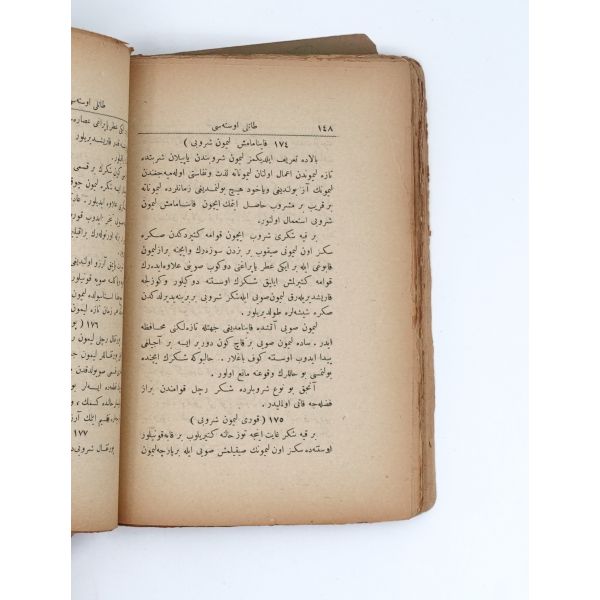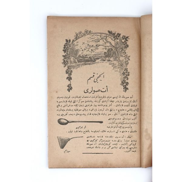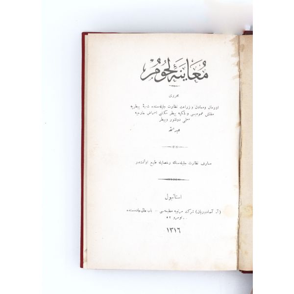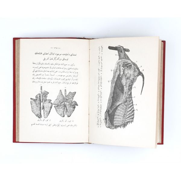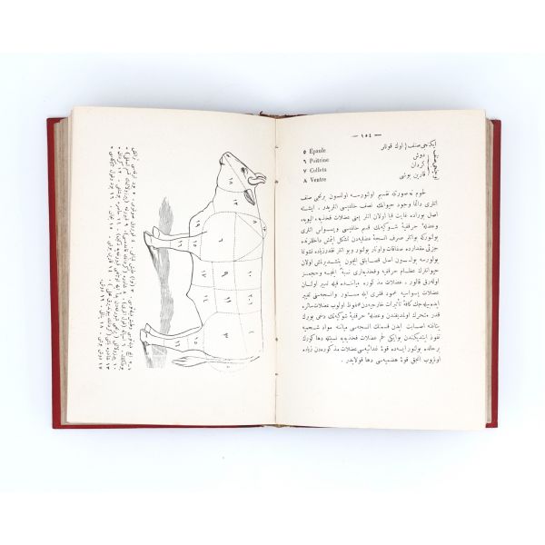 Osmanlı devlet armalı ve ay yıldızlı görkemli cildinde... İçerisinde hayvanların et muayenesini ve etlerin hangi bölgelerinin daha makbul olduğunu anlatan görseller yer almaktadır.
