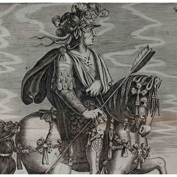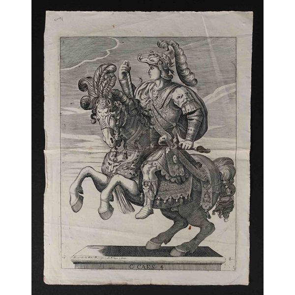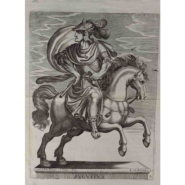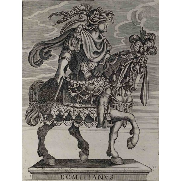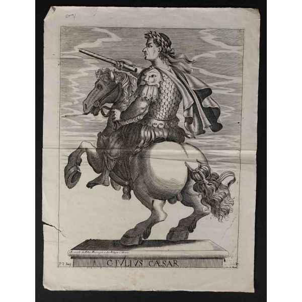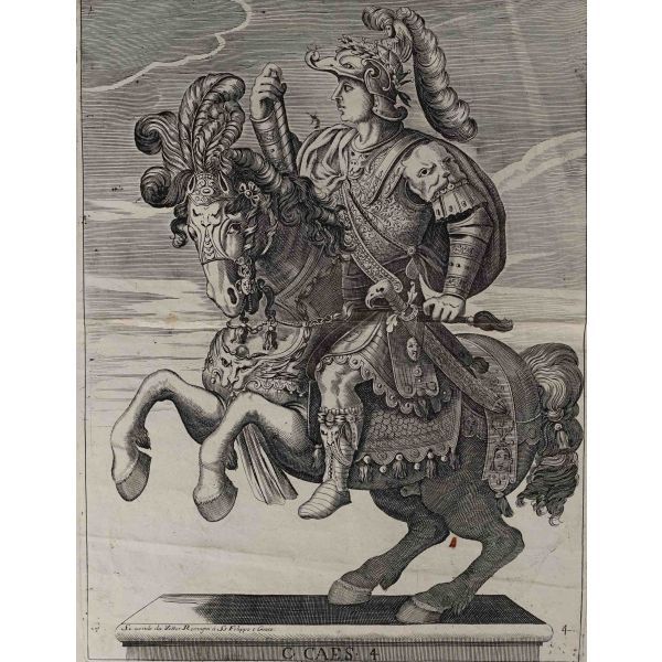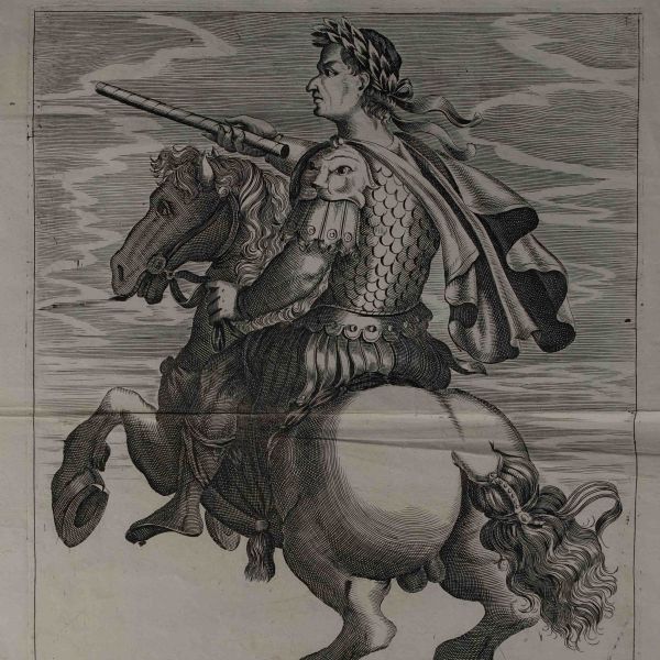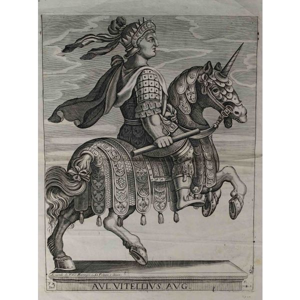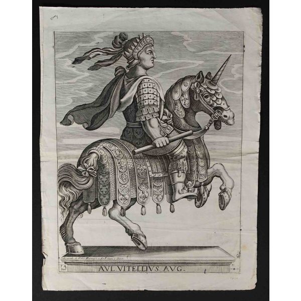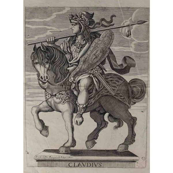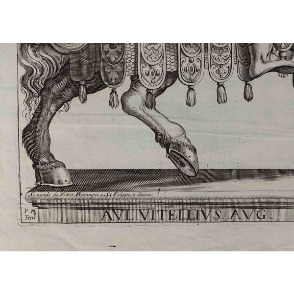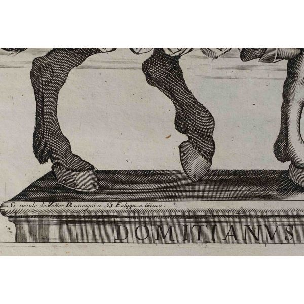 Roma İmparotorluğu - The Twelve Caesars serisinden 1754 tarihli gravür. "Si vende da Vettor Romagni a Ss. Felippo e Giaco. - P.T. Fecit" Bir kitabın içinden çıkma değil, müstakil olarak basılıp satılmış bakır baskı gravür.