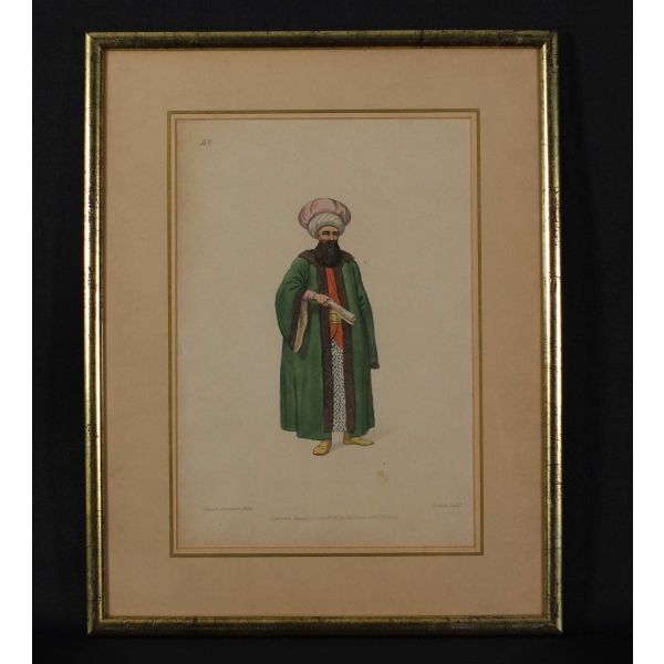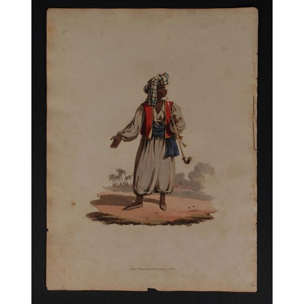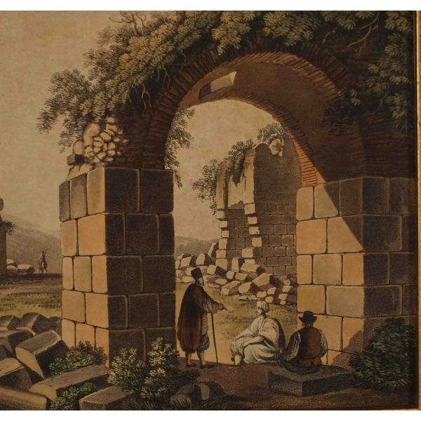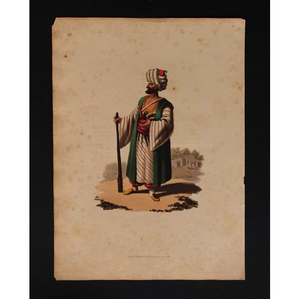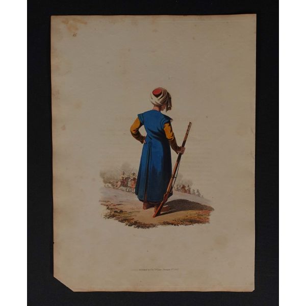 Hayatı hakkında bildiklerimiz sınırlı olsa da, geriye bıraktığı eşsiz resimleriyle sanat tarihinde mühim bir yer tutan İtalyan asıllı ressam Luigi Mayer (1755 - 1803), Orta Doğu´yu en detaylı resmeden Avrupalı ressamlardan biri addedilir. 1776 yılında İstanbul´a İngiliz Büyükelçisi olarak atanan Sir Robert Ainslie´nin maiyetine katılarak şehre ayak basan Mayer, burada bulunduğu yıllarda masalsı şehri ustalıkla resimlemiştir. Antik Doğu´ya oldukça meraklı olan Ainslie, tüm masraflarını karşılayarak kendisini Osmanlı topraklarında bulunan tarihi eserleri resimlendirmesi için görevlendirmiş ve böylece Mayer´in arkeolojik sitler başta olmak üzere Anadolu ve Orta Doğu topraklarında 1794 yılına kadar çizeceği enfes resimler tarihe geçmiştir. Yalnızca antik kalıntılar ile sınırlı kalmayıp etnik tipleri ve kostüm çeşitliliğini de resimleyen Mayer´in eserleri 1800´lü yıllardan itibaren taş baskı gravürler halinde geniş kitlelere yayılmış ve hayli popüler hale gelmiştir. *Künye bilgileri paspartunun altında kaldığı için okunamamıştır.