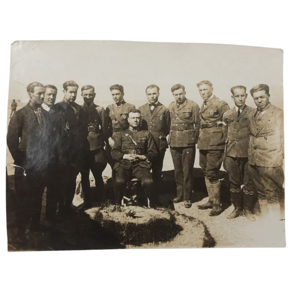 *Fotoğrafın orta üst bölümünde küçük bir kopuk mevcuttur. Fotoğrafın arka yüzüne yeni harflerle kadrajda yer alan tanınmış simaların isimleri not düşülmüştür.