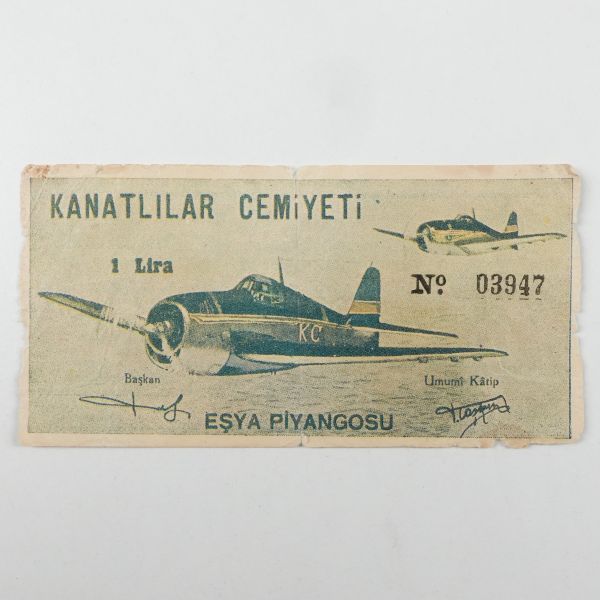 "İstanbul Valiliğinin 12/2/948 gün ve 757 sayılı müsadesile" düzenlenen piyango sonucu dağıtılacak hediyelerden bir kısmı: "1 Cessna marka 48 modeli spor tayyare, 1 Deniz motörü 40 mil sür´atte, 1 48 modeli lüks otomobil 1 Jeep marka servis otomobili..."
