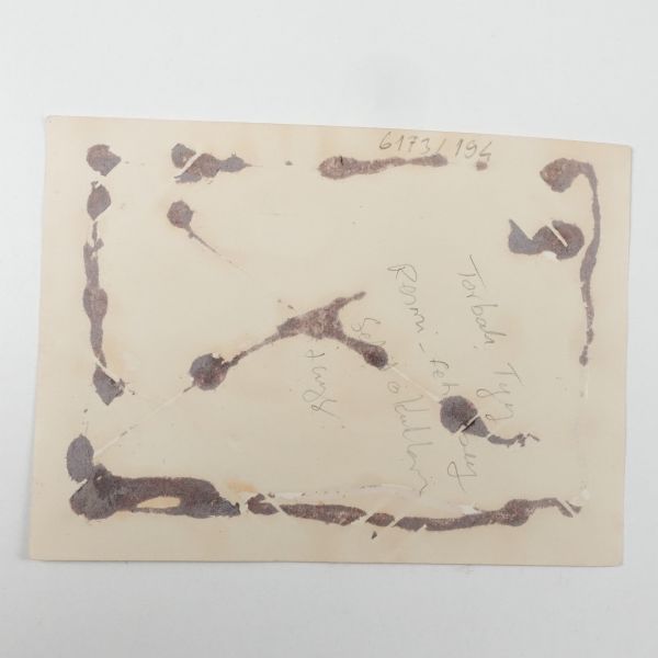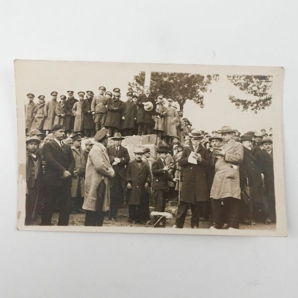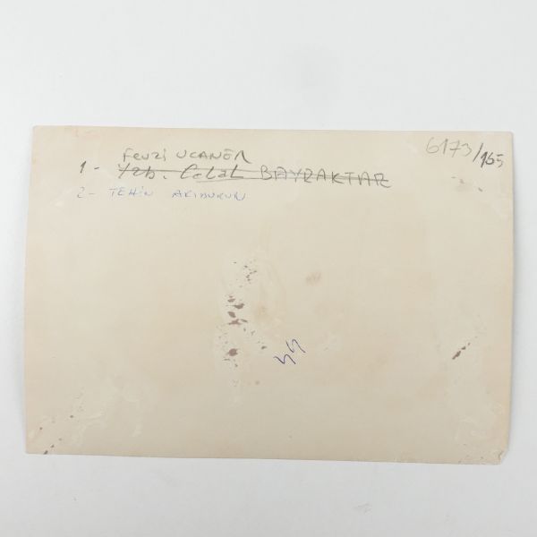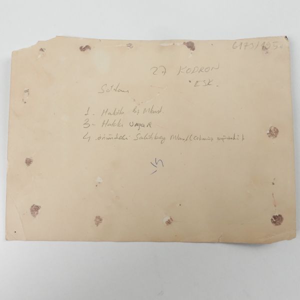 Fotoğrafın arka yüzüne yeni harflerle kadrajda görülen simalardan bir kısmının ismi not düşülmüştür. *Fotoğrafın sağ üst köşesinde ufak bir kopuk mevcuttur.