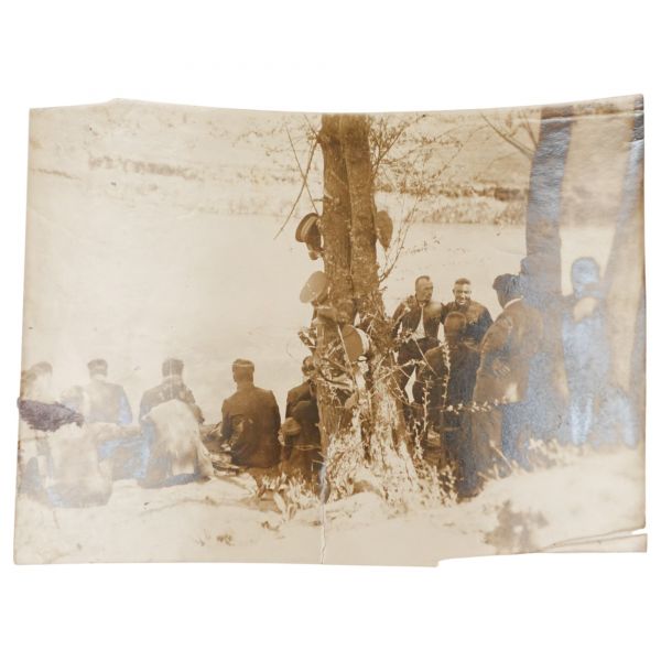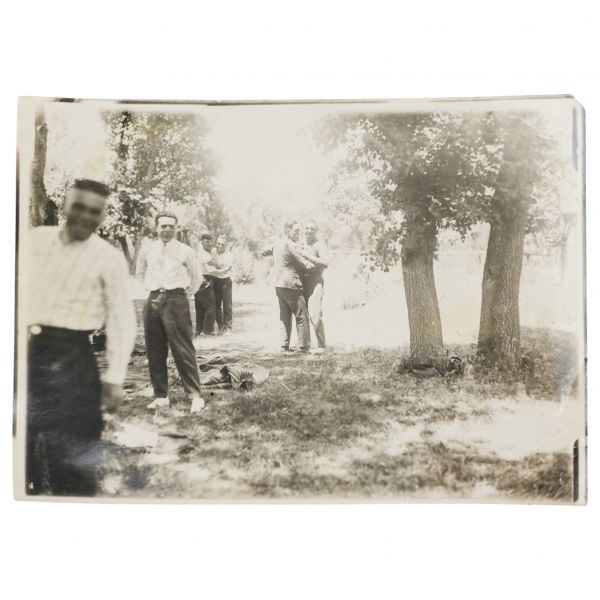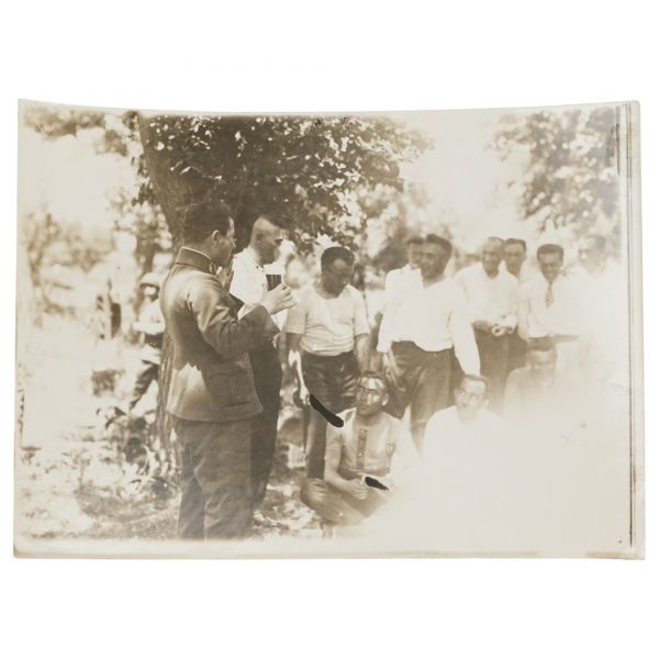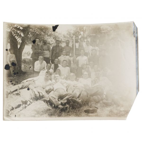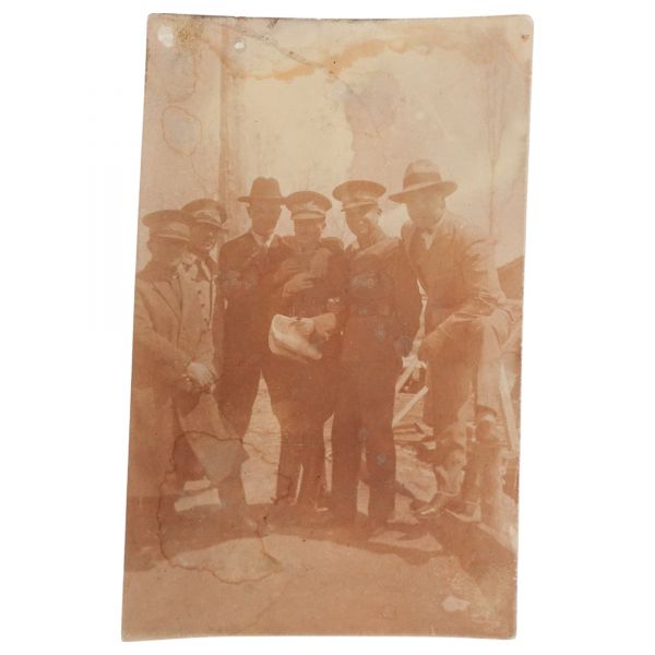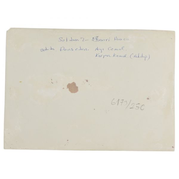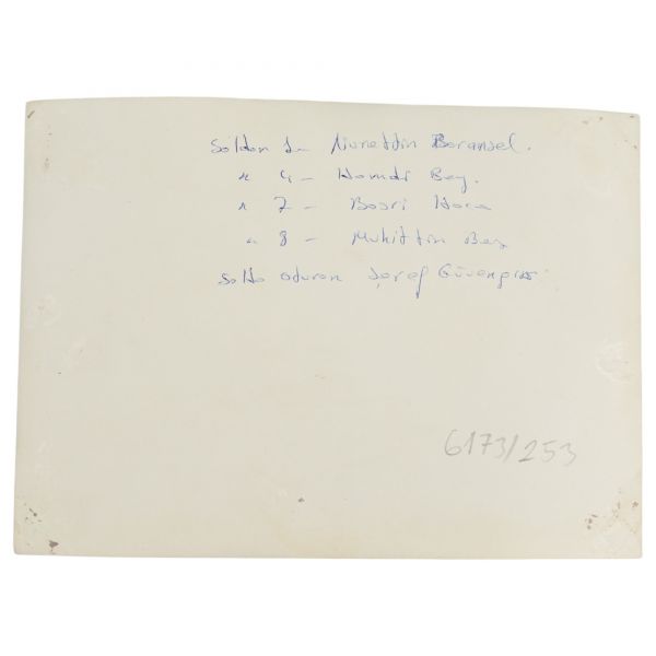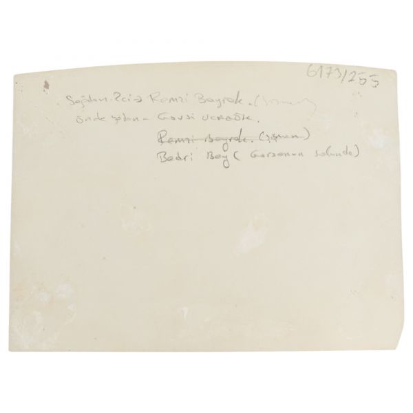Fotoğrafın arka yüzüne yeni harflerle kadrajda yer alan tanınmış simaların isimleri not düşülmüştür. *Fotoğrafın alt bölümünde küçük bir yırtık mevcuttur.