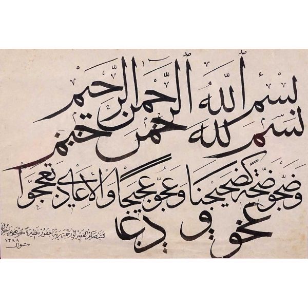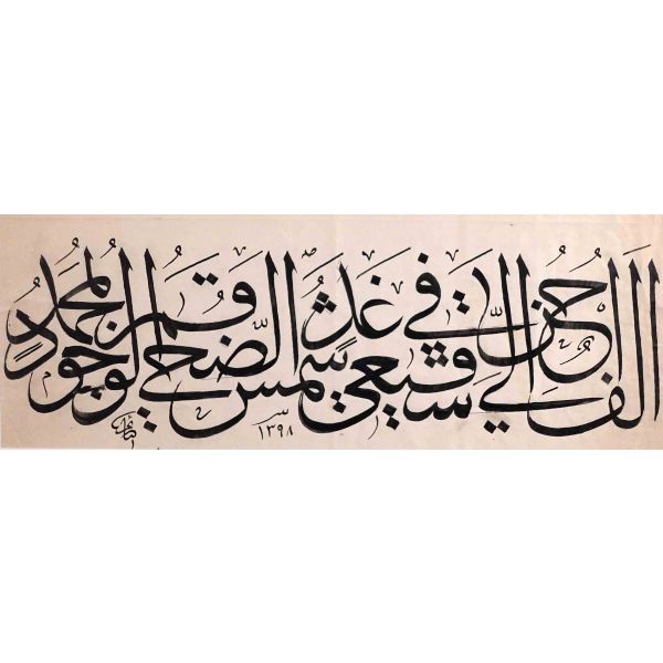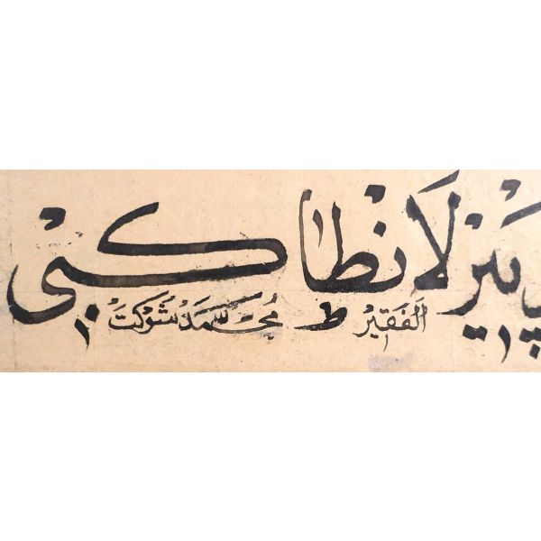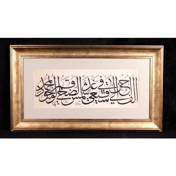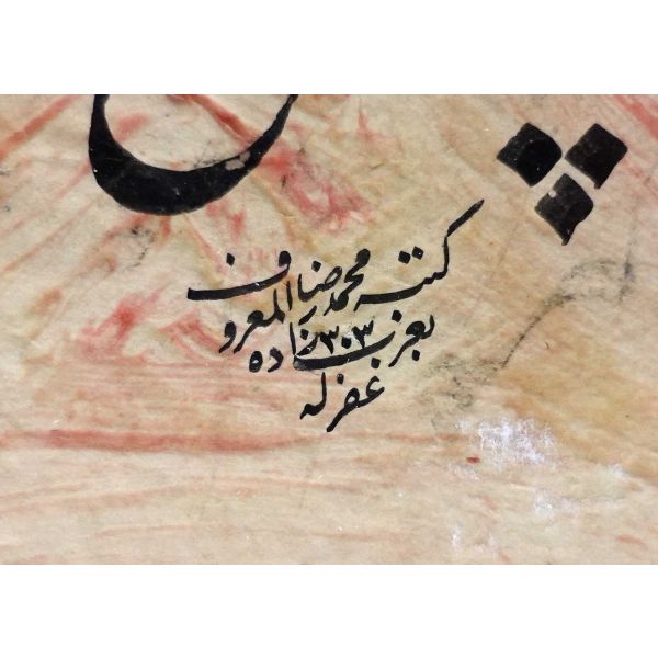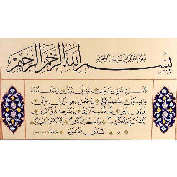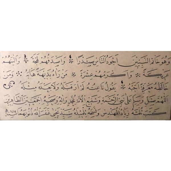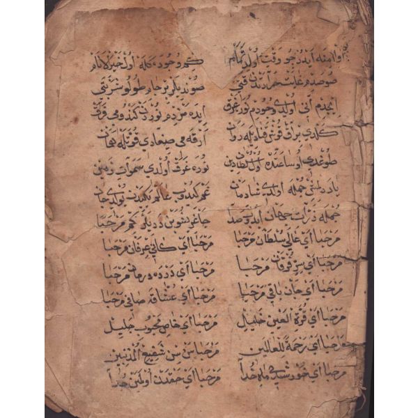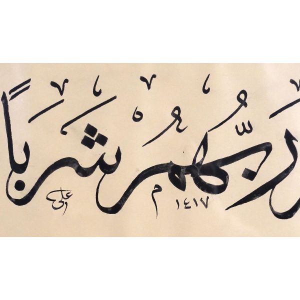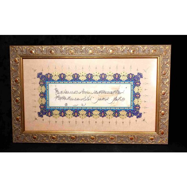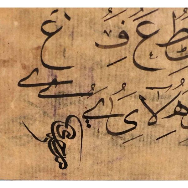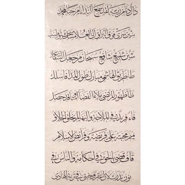Okunuşu: "Ey Bâr-ı Hudâ be-hak-ı hestî; Şeş çîz merâ meded ferestî; İlm ü amel ü ferâh-destî; Îmân ü emân ü ten-dürüstî [Ey Cenâb-ı Allah, varlığn hakkı için; Şu altı şeyi yardımıma gönder; İlim, amel ve el açıklığı; İman, güvenlik ve beden sağlığı]" (Ebu Saîd Ebu´l-Hayr)