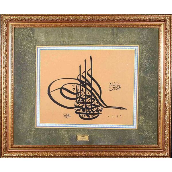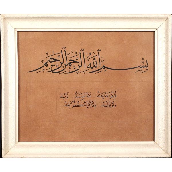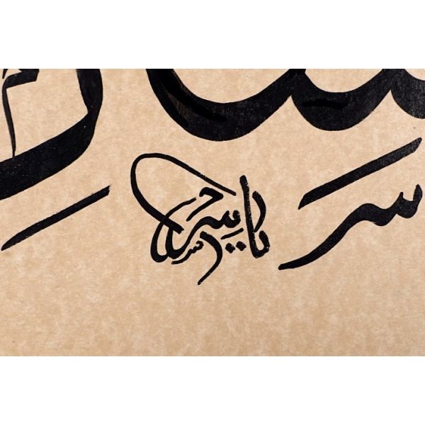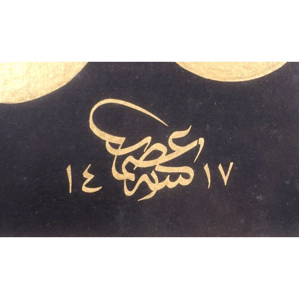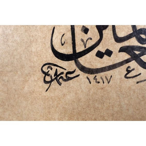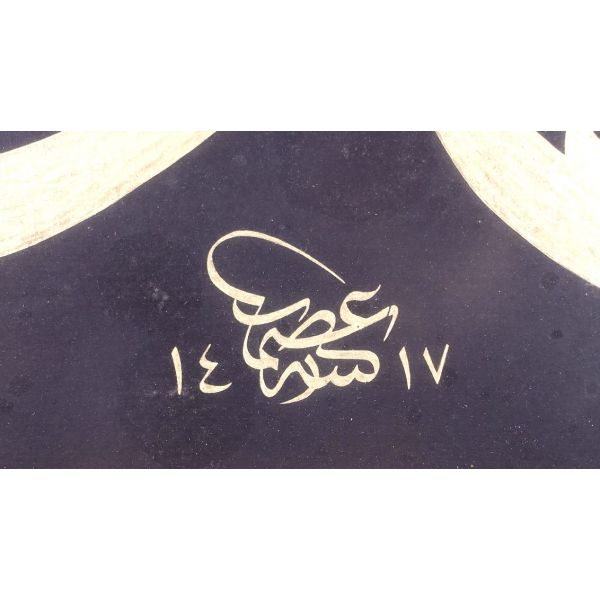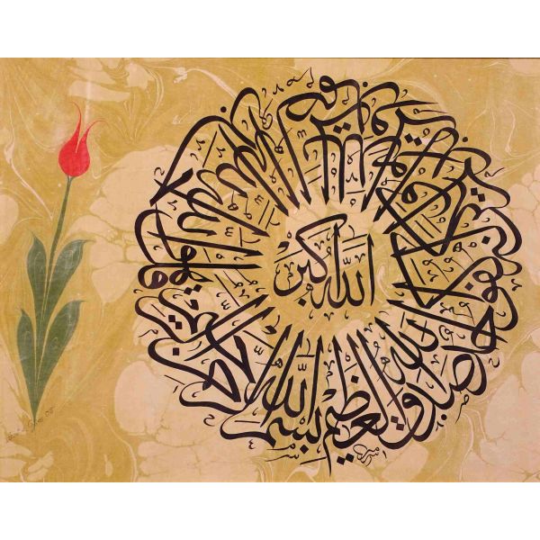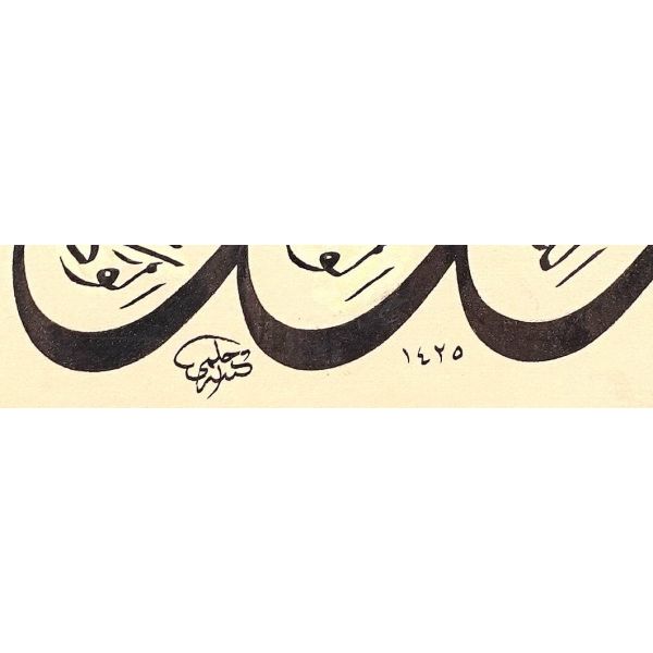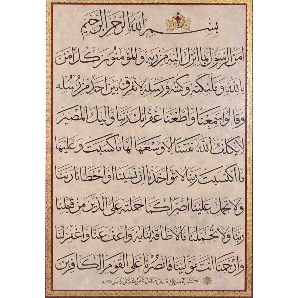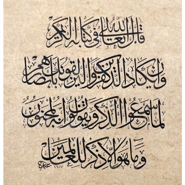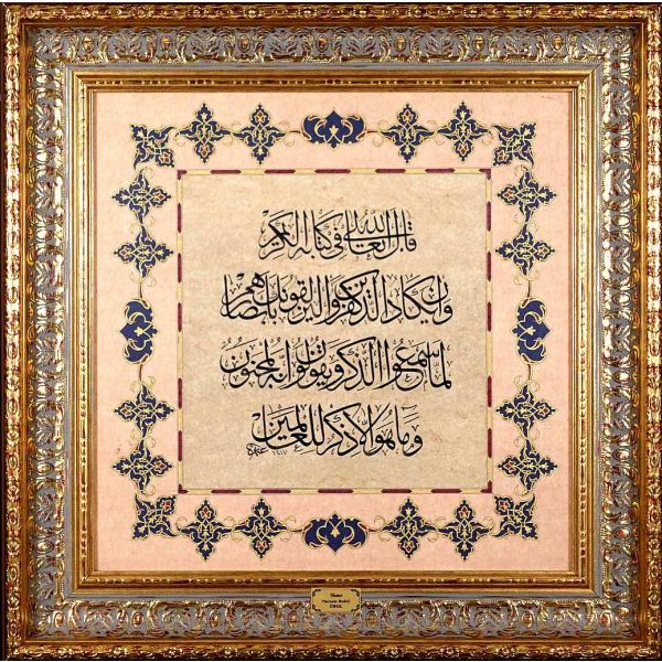 Kalem Suresi´nin 51 ve 52. ayetleri yazılıdır."51. Ve in yekadulleziyne keferu leyuzlikuneke biebsarihim lemma semi´uzzikre ve yekulune innehu lemecnunun. 52. Ve ma huve illa zikrun lil´alemiyne."