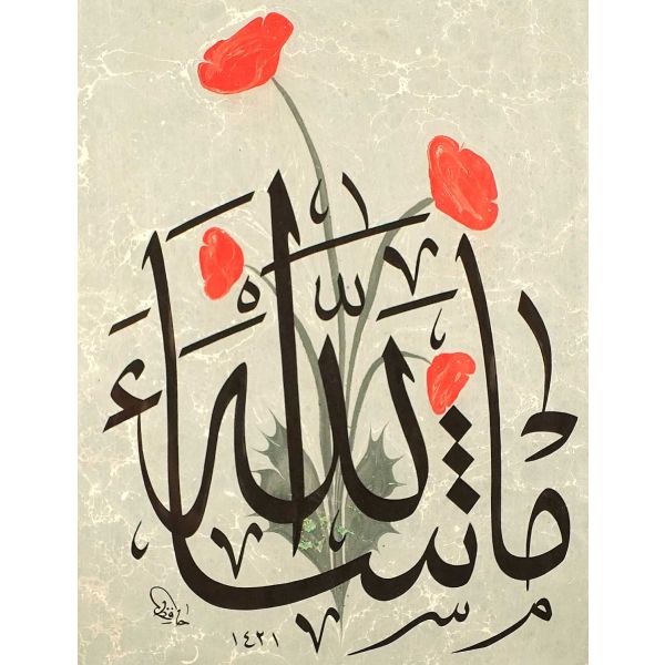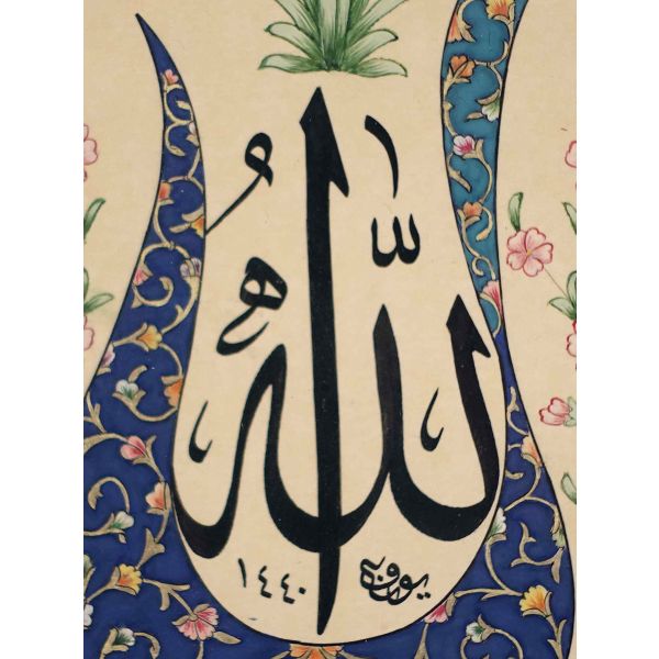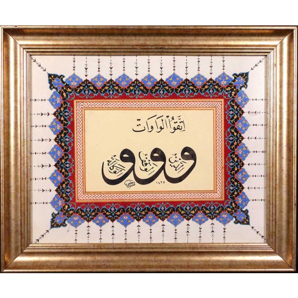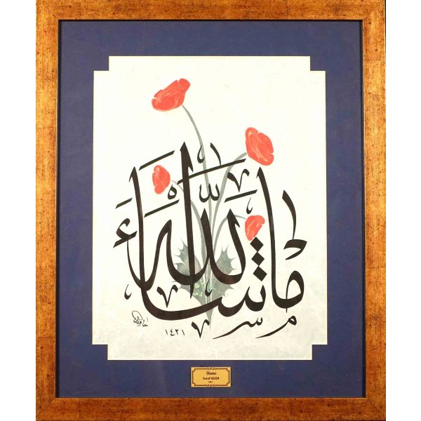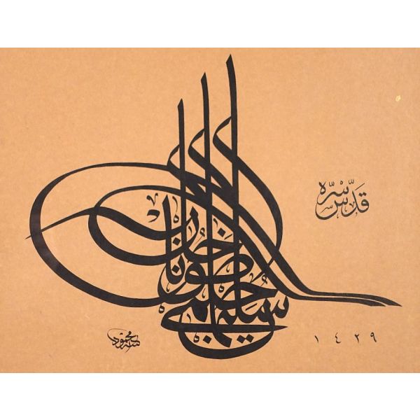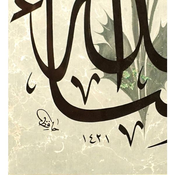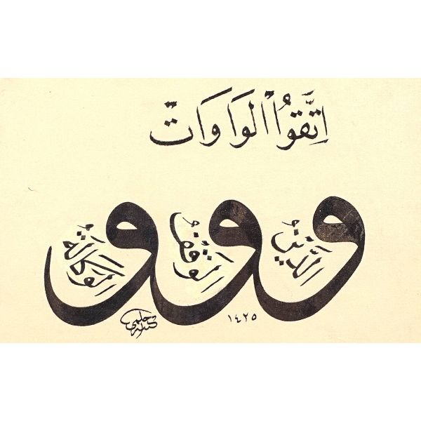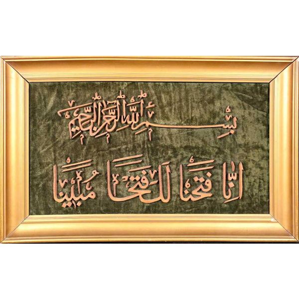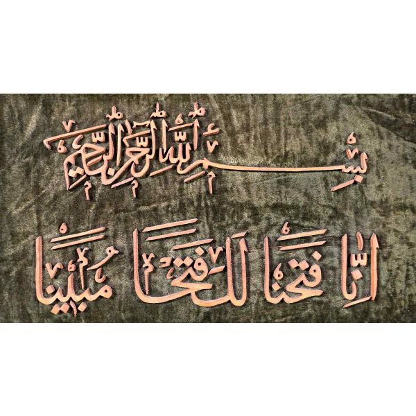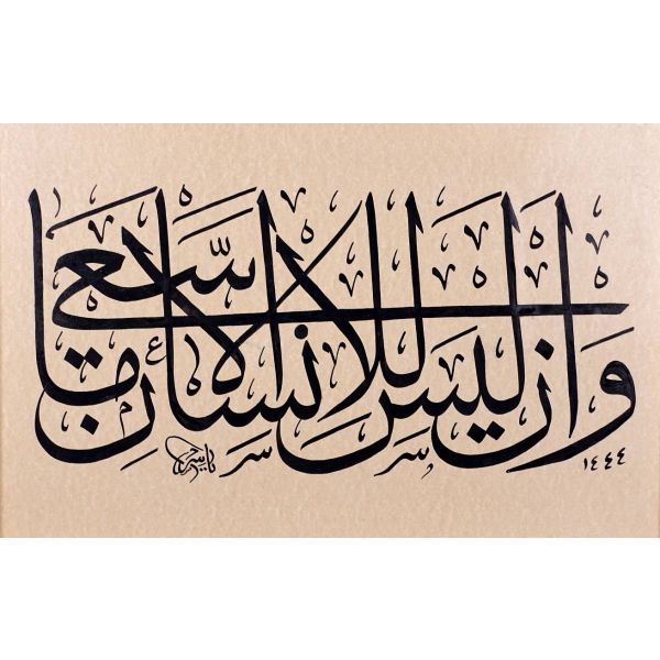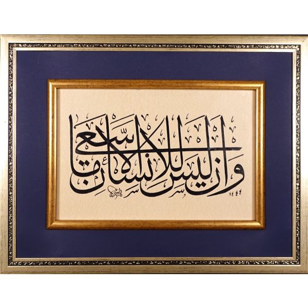 Kalem Suresi´nin 51 ve 52. ayetleri yazılıdır."51. Ve in yekadulleziyne keferu leyuzlikuneke biebsarihim lemma semi´uzzikre ve yekulune innehu lemecnunun. 52. Ve ma huve illa zikrun lil´alemiyne."