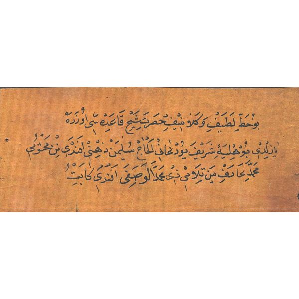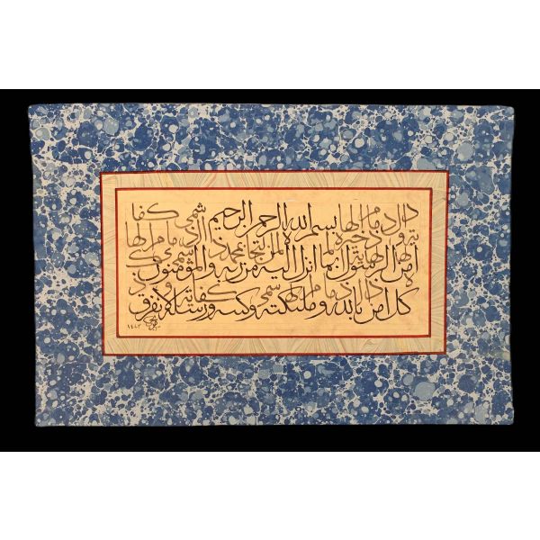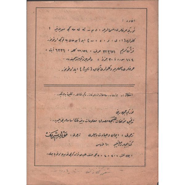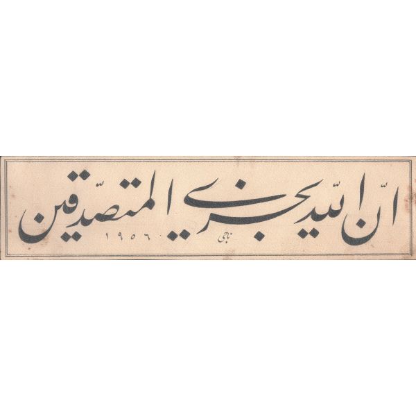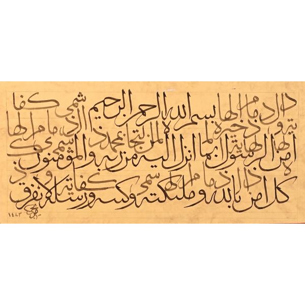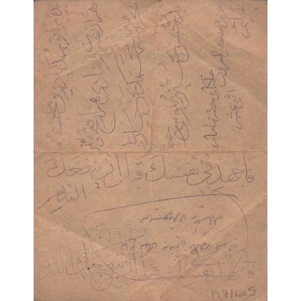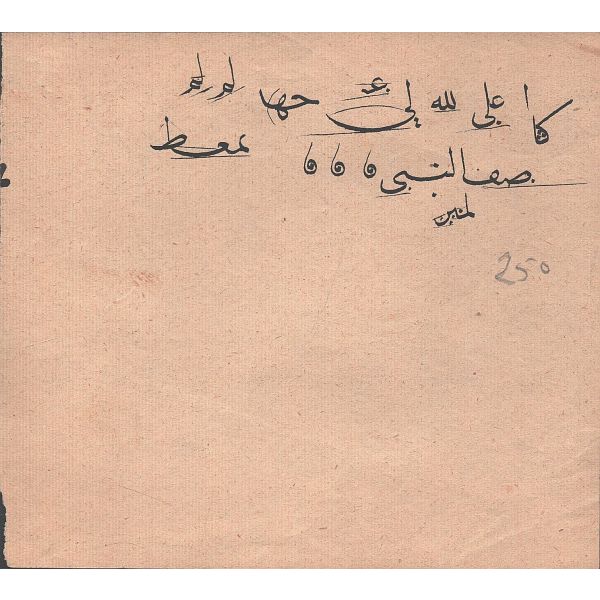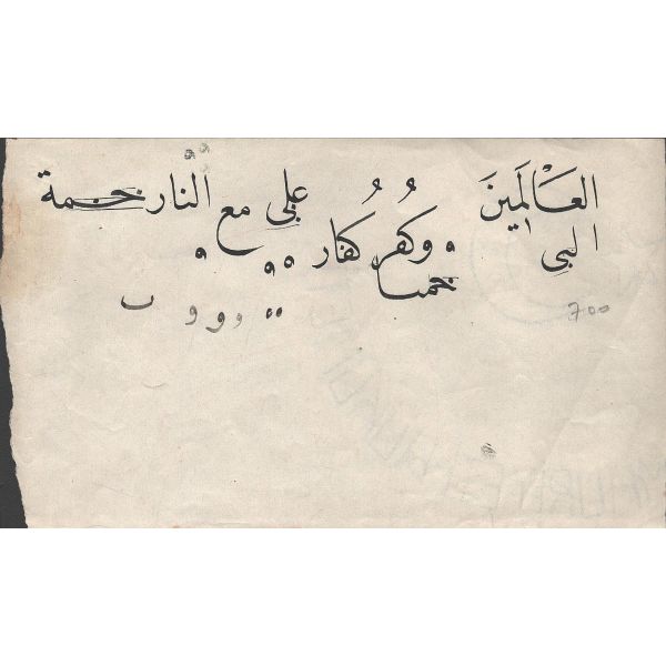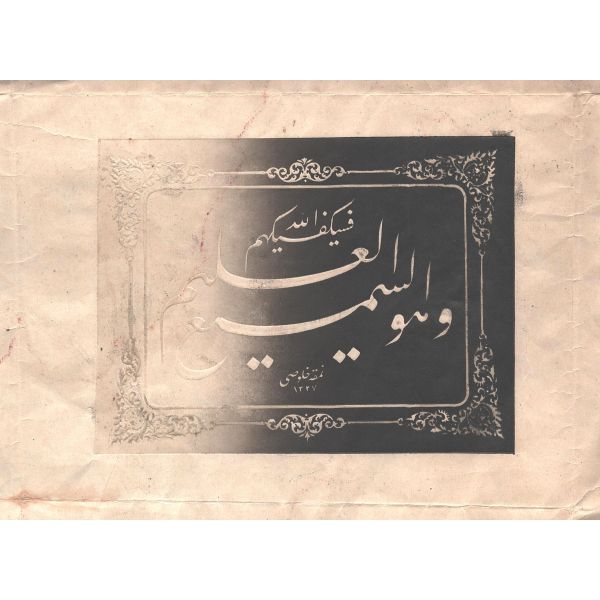 "Allah´ın resulüdür ve peygamberlerin sonuncusudur ve Allah, her şeyi bilir" anlamına gelen, Ahzab Suresi´nin 40. Ayet-i Kerimesi yazılıdır. *Yazı şeffaf kağıt üzerine yazılmıştır.
