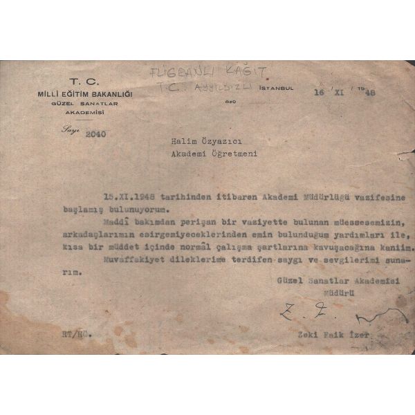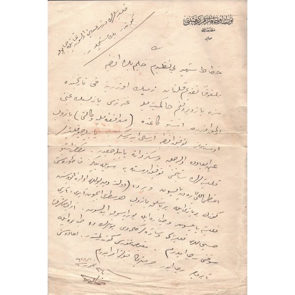 Mektupta, daha önceden Halim Bey´e yazdırılan "Hakimiyet-i Milliye" gazetesi yazısının aynısından olmak üzere, "Müdafaa-i Milliye Vekaleti" yazılmasını isteyen iş teklifi mektubu.
