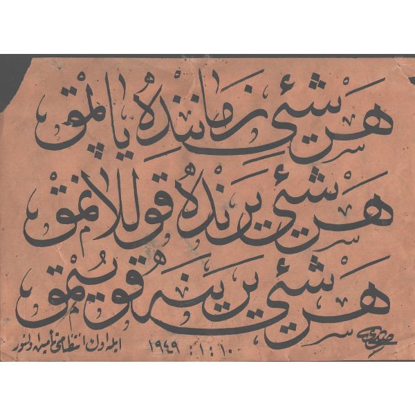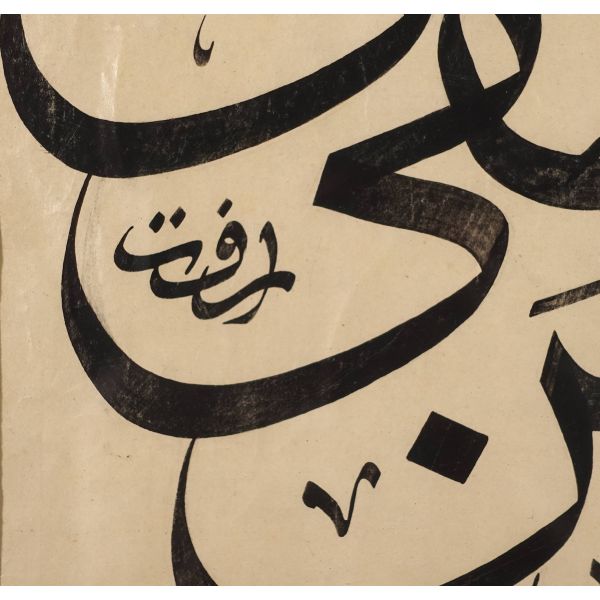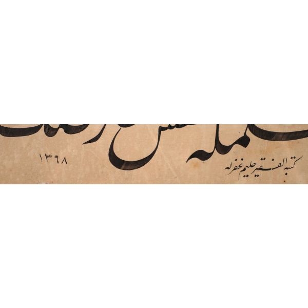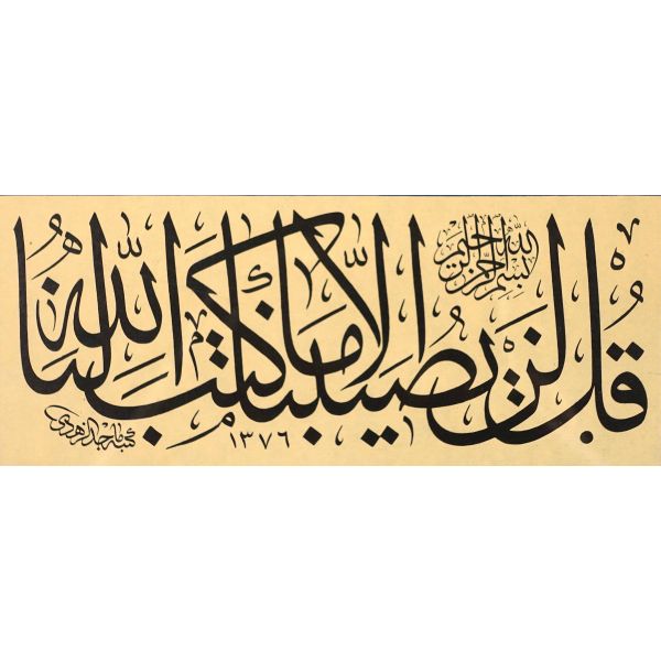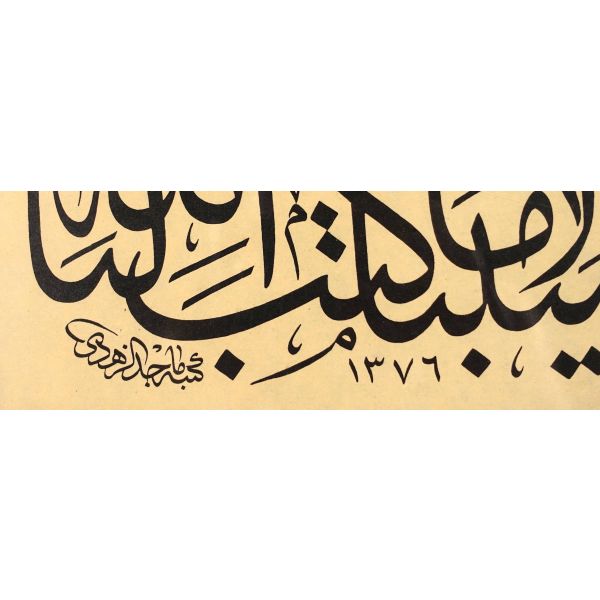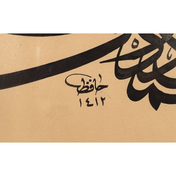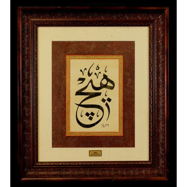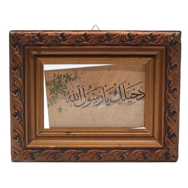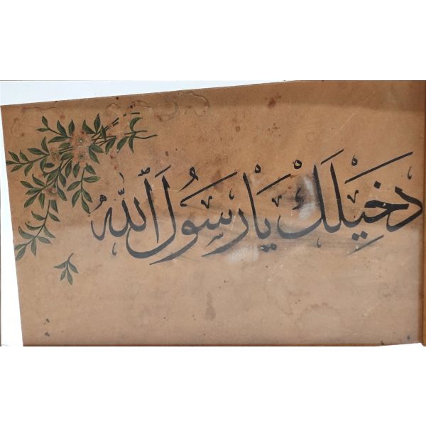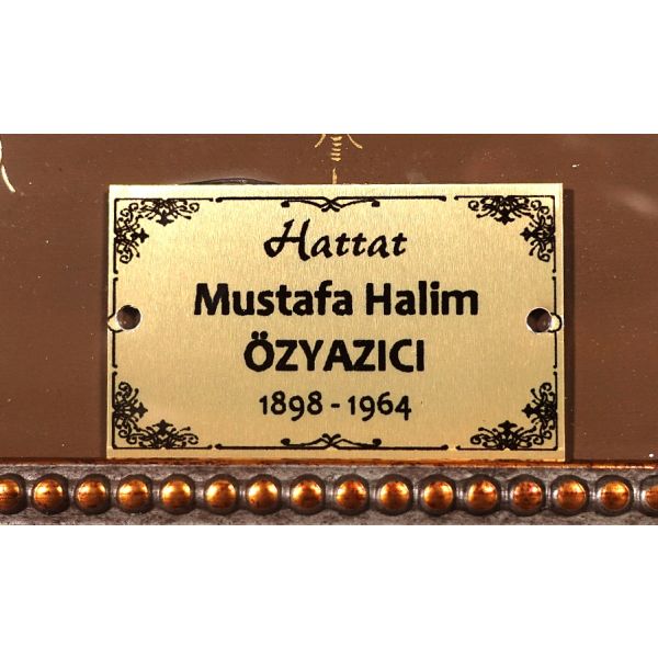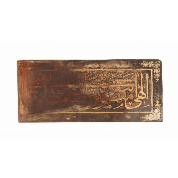 Yazı, "Ya İlahî, maksadım sensin ve amacım senin rızanı kazanmaktır." anlamına gelen, ´´İlahi Ente Maksudi ve Rızake Matlubi´´ şeklindedir. *Levhanın sağ köşesinde çatlak vardır.