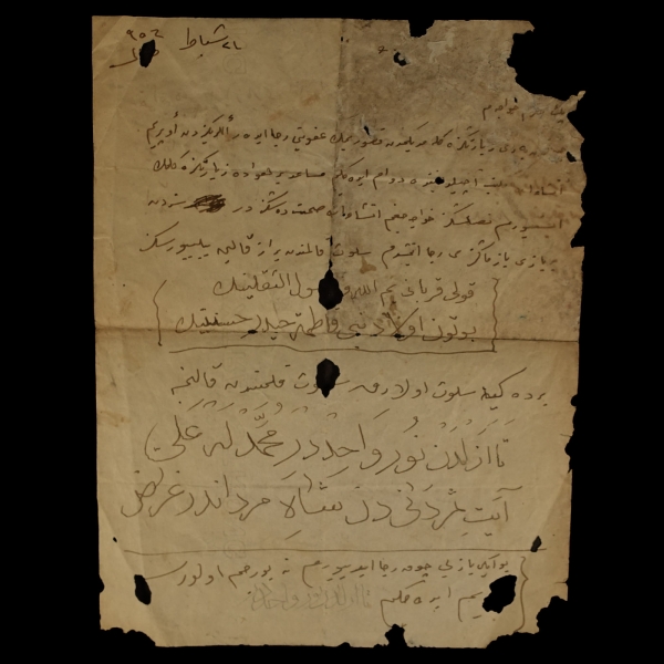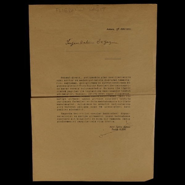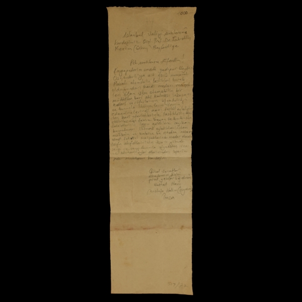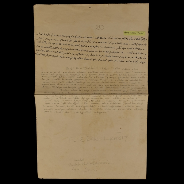 Mektupta, Bekir Pekten Halim Efendi´den bir yazı siparişinde bulunmuştur. Ayrıca mektup üzerinde Halim Özyazıcı´ya ait olduğu düşünülen meşkler mevcuttur.