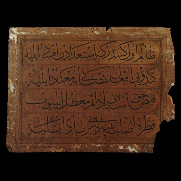 "Zalim ol kesdirki istidadın ifsad eyleye / Kendüyi ef´al-i noksanıya mutad eyleye / Feyz-i hak esbabını daim muattal eyleyüb / Fıtrat-ı asliye-yi bünyadını berbad eyleye eyleye"