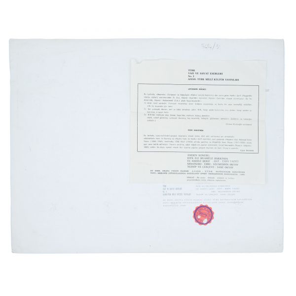Bu tıpkıbasım eserin tezhibi Müzehhip Sami Okyay, ebrusu Necmettin Okyay, en dıştaki çerçeve görünümlü tezyinat da Sami Okyay´a aittir. Arka yüzünde açıklama mevcuttur.