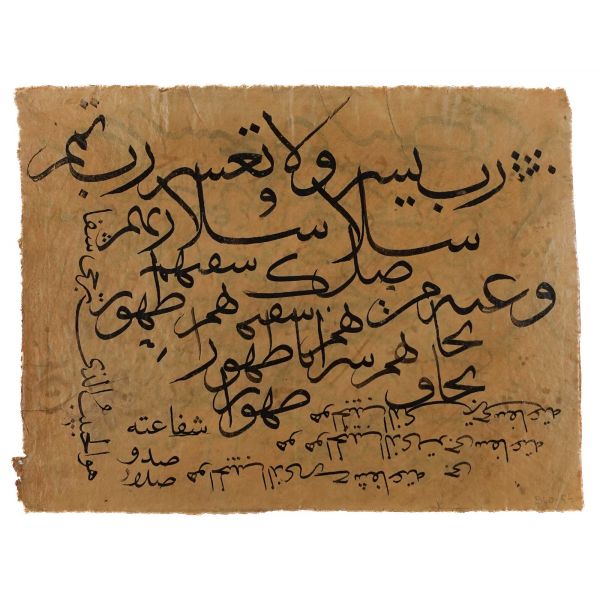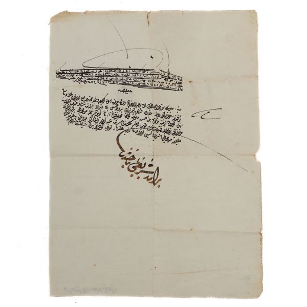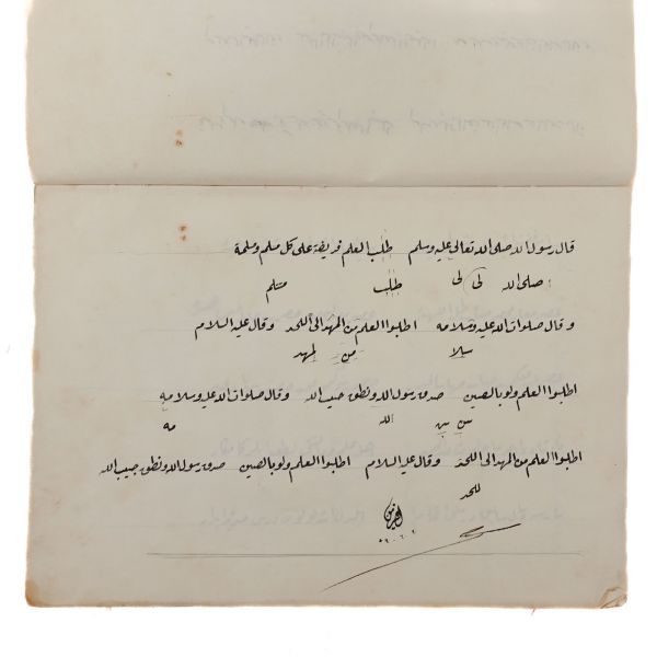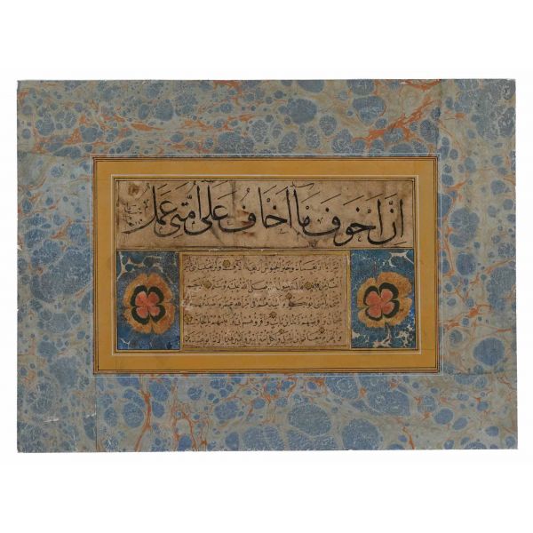 Nesih yazıda temmet sayfası ve sülüs yazıda hüsn-i hat ile alakalı vecizelerin yazılı olduğu sayfa, sol üstte Seyyid Mustafa Efendi´ye verildiğine dair kayıt mevcut.