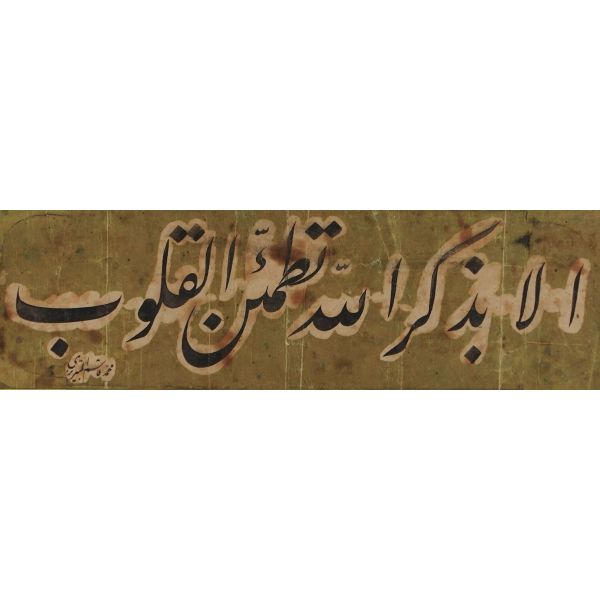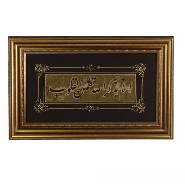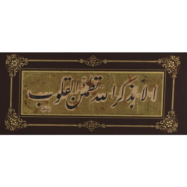 "Kalpler Ancak Allah´ı zikretmekler tatmin olur." anlamına gelen Hadis-i Şerif yazılıdır.