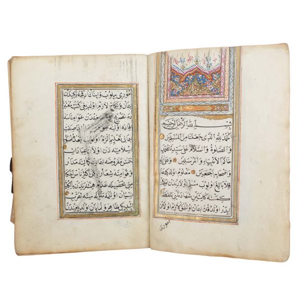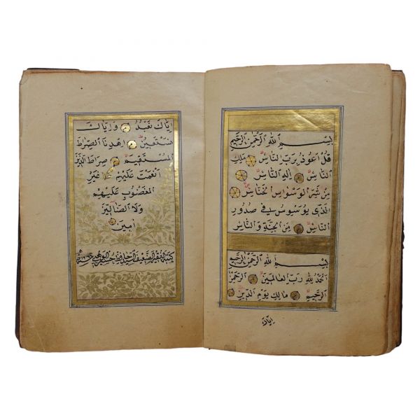 Eser; serlevhalı, serlevha sayfası beynessütur tezhipli, sure başları altın levhalı, tüm sayfaları tahrirli altın cetvelli ve altın duraklı ve zencerekli deri dönem cildi içerisindedir.