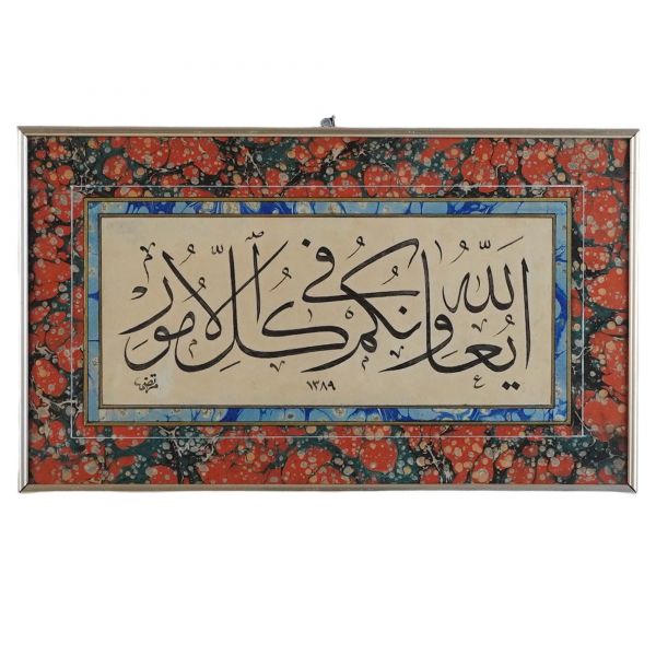 Sülüs oklu besmele ve nesih yazı ile şu hadis-i şerif yazılıdır: "Allah, Adem ve zürriyetini yarattığında melekler dediler ki: Ey rabbimiz, yarattıkların yer, içer, nikahlanır, gezerler. Onlara dünyayı, bize ahireti ver."