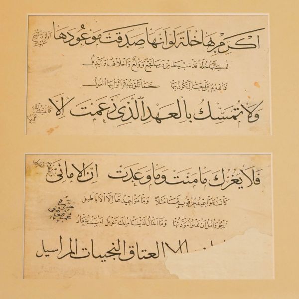 Yazının ketebe kısmında “Ömer Vasfi 1220” kaydı bulunmaktadır. Yazı çok kuvvetli bir elden çıkmış Laz Ömer Vasfi Efendi'nin yazı tavrına muvafık olmakla birlikte ketebe kısmın sonradan yazıldığı kanaatindeyiz.