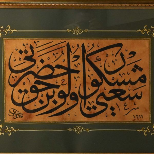 Eserdeki tarih meşhur hattat Hulusi Yazgan'ın yaşadığı yılları tutmamaktadır. Bu nedenle yazının kalemi kuvvetli başka bir hattat tarafından yazıldığı veya tarihin sonradan atıldığı tahmin edilmektedir. Pey verirken dikkate alınız.