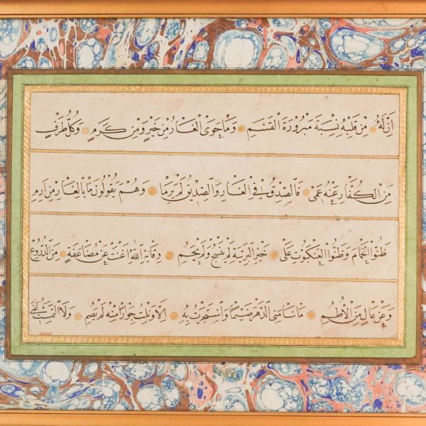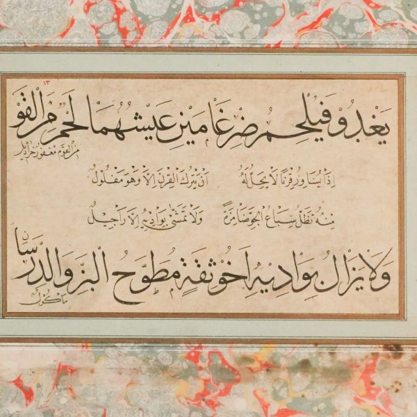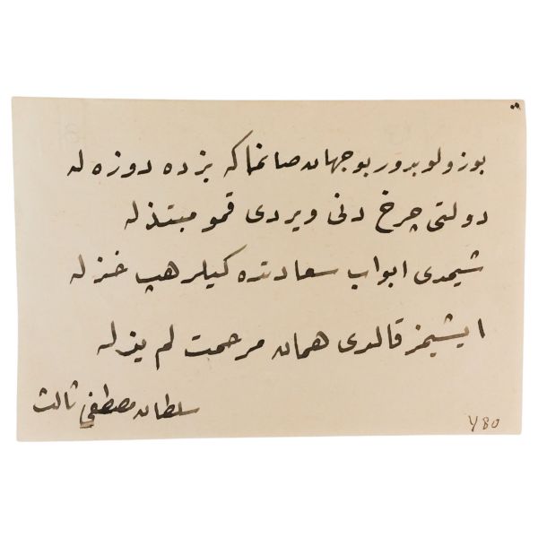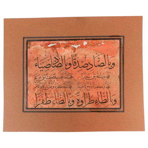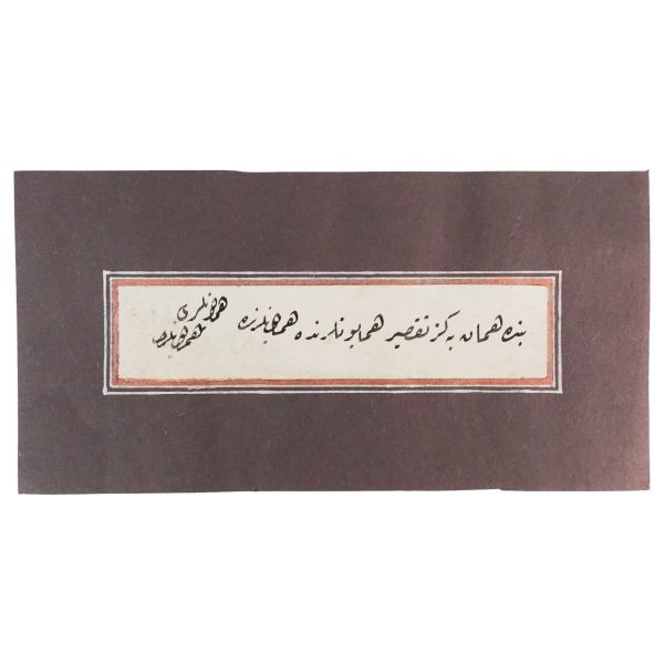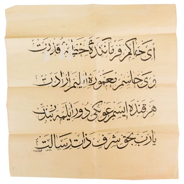 Okunuşu: Ey hâkim fermanında-i hıtta-i kudret / vey hasim-i mamure-i iklim-i iradet / her kande isem avun ki devr eyleme benden / Ya Rab bihakkı şeref-i zât-ı risalet