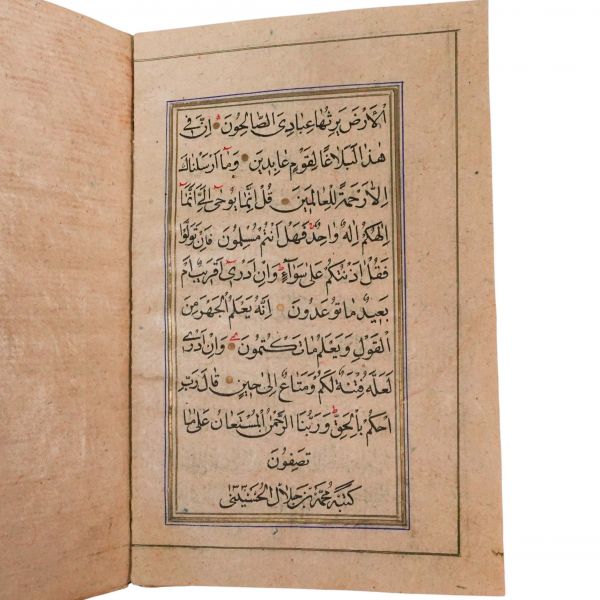 Eser; serlevhalı, tüm sayfaları tahrirli altın cetvelli harekeli nesih yazı ile yazılmış, zencerekli deri dönem cildi içindedir. *Eserin cildi sırt kısmından ikiye ayrıktır, basit tamir istemektedir.