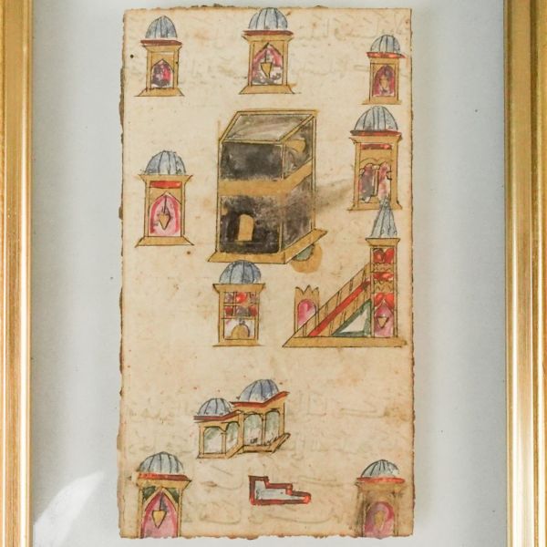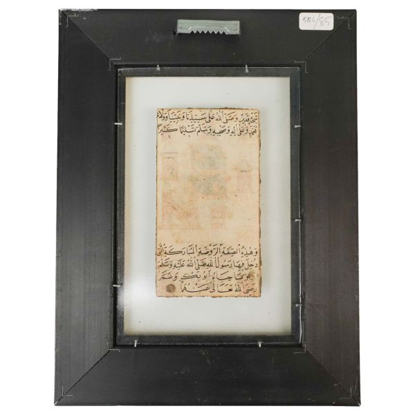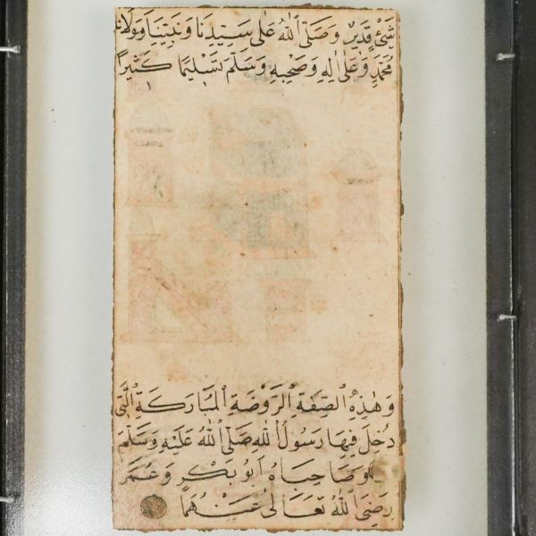 Eserin ön yüzünde hilyelerde yazılan muhakkak besmele, sülüs "ve ma erselnake" ibaresi ve nesih olarak Hz. Ali'den nakledilen hilye-i şerife metni yazılıdır.