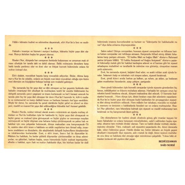 "Yaldızlı meşin kabı / Parçalanmış kitabı / Ay altında dün gibi / Deli bir derviş gibi / Mumu sönmüş, rahlesi yere devrilmiş gibi / Okurum saatlerce..."