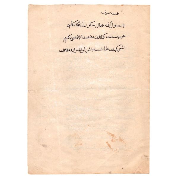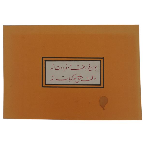 "Çün ferâgat zi-müfredât âmed / Vakt-i meşk-i mürekkebât âmed" Anlamı: Müfredat çalışması bitince harfleri birleştirip yazı yazma vakti geldi". Usta hattat yazısı; üstad, öğrencisi harf çalışmayı bitirince ona "ilerlemeye devam" anlamında yazmıştır.