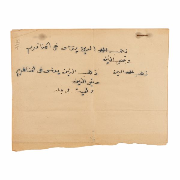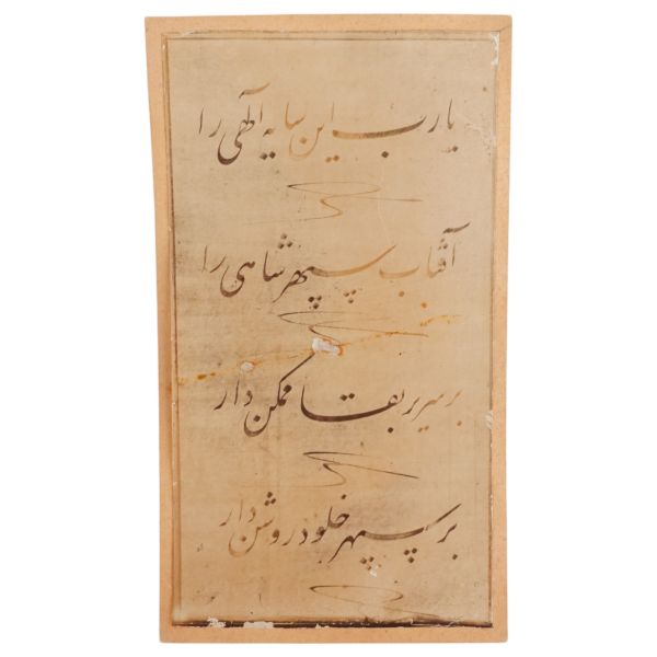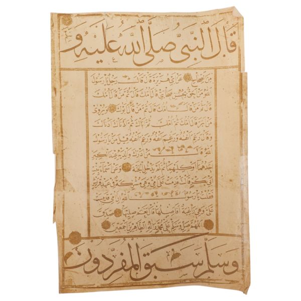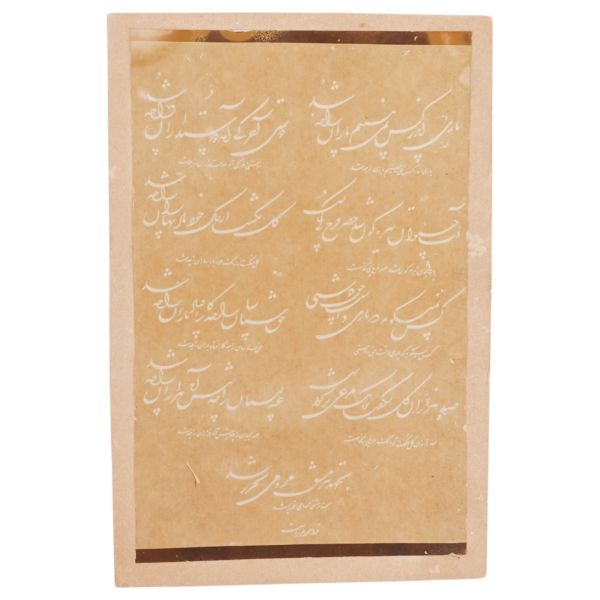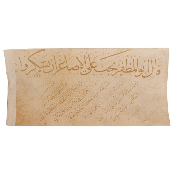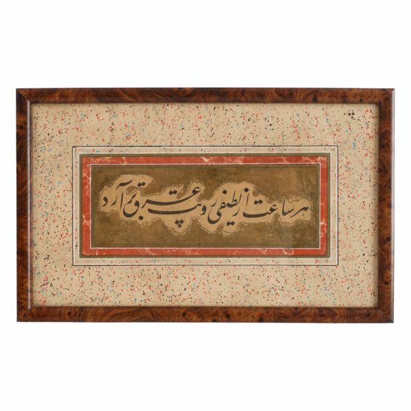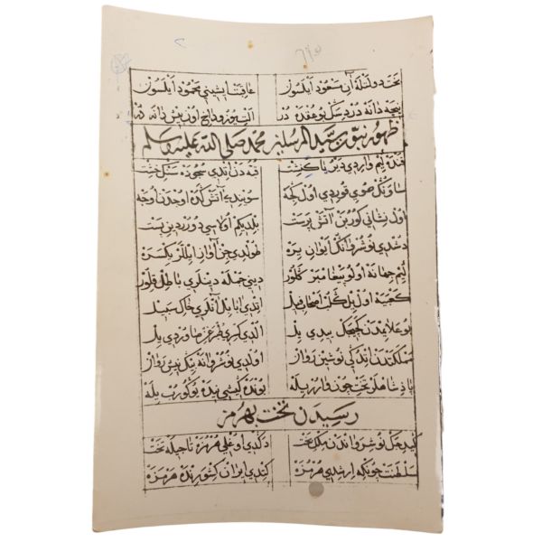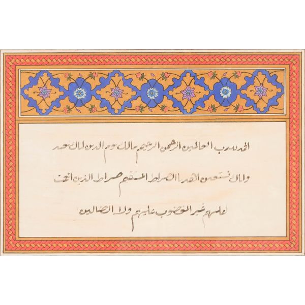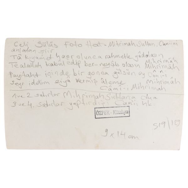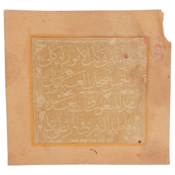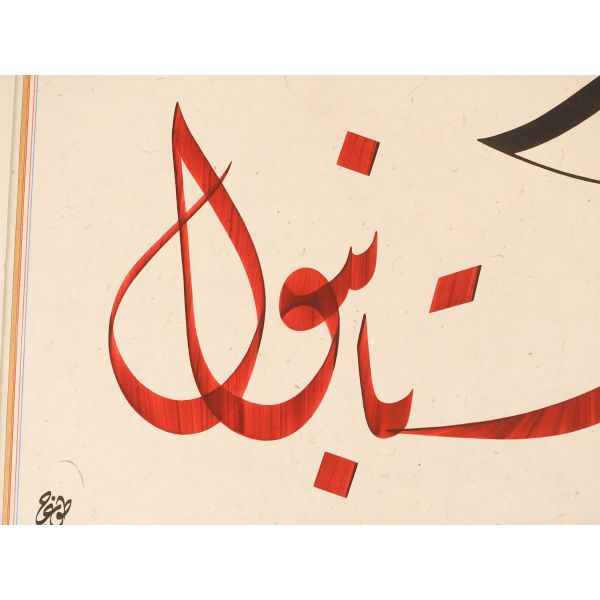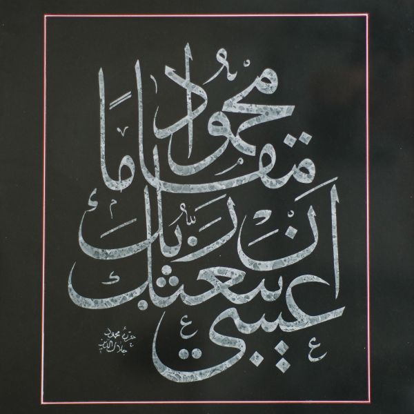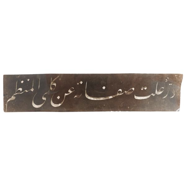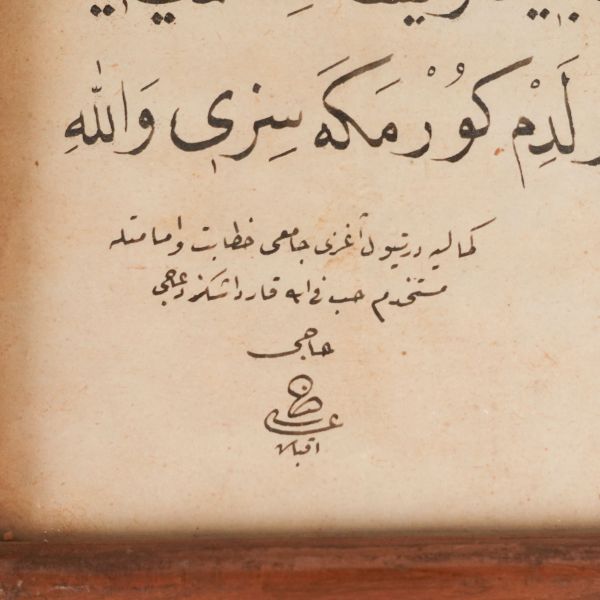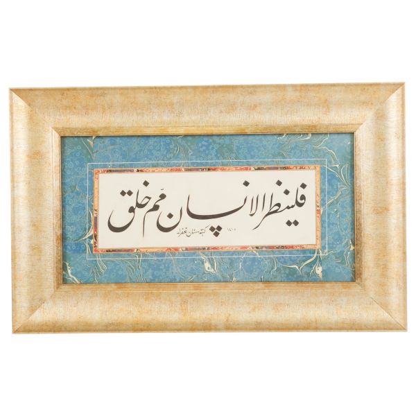 Sol tarafına 99 (1299) tarihi düşülmüştür. Sülüs kısımda hurufat meşkinin bittiği ve ebced harfleri yazılıdır. Nesih kısımda Hz. Ali'nin "Allah'ın aslanı" olduğunu söyleyen hadis-i şerif vardır.