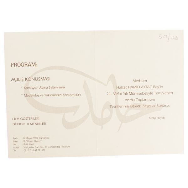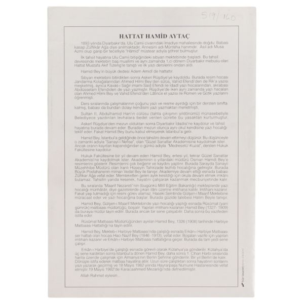 HÜSN-İ HAT, 20.07.2025 saat: 22:00'a kadar internet sitemizden pey verebilirsiniz. 22:02 itibariyle canlı müzayedemiz başlayacaktır. Kitap, Dergi ve süreli yayın hariç tüm ürünlerden % 20 ürün KDV'si alınmaktadır. Komisyon Oranı: % 20 + KDV'dir. ÖDEME SÜRESİ MÜZAYEDE BİTİMİNDEN SONRA 1 HAFTADIR.