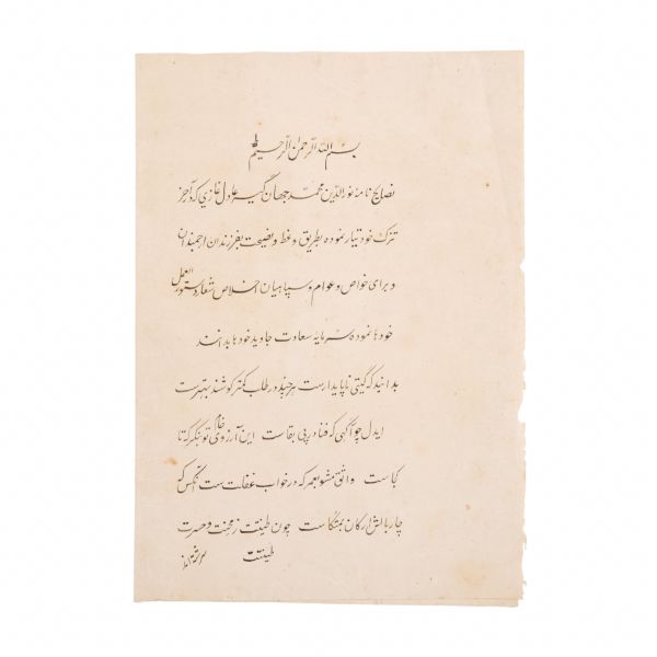 Ana metin Farsça olarak bir Osmanlı makamına yazılmıştır.