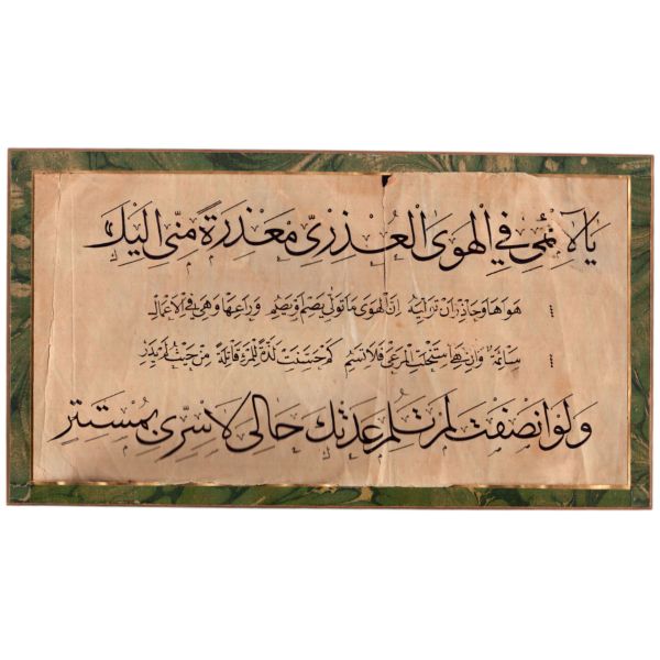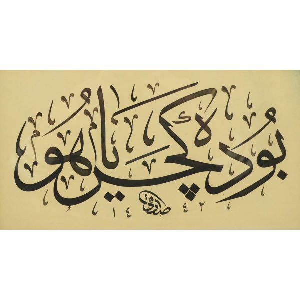 Sırasıyla sülüs, icazet, talik, anberî, celî divanî, rika, nesih, reyhâni, divanî, kûfî, makılî, sünbülî yazılarıyla...