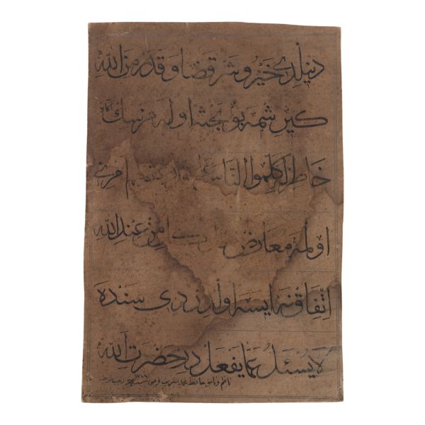 *İlk iki sayfanın ve son sayfanın kondisyonunu inceleyerek pey veriniz. Sayfa kenarlarında ıslaklık kaynaklı renk değişikliği vardır. Baş ve son kısımlarda sayfa uçlarında kıvrılmalar mevcuttur.